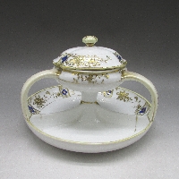 オールドノリタケとは森村組や日本陶器(現在のノリタケカンパニーリミテッド)が、明治末期から戦前までに製造したヴィンテージ・アンティーク陶磁器の総称です。西洋風絵付けが施された陶磁器は、主にアメリカやイギリス等に輸出されていました。オールドノリタケの陶磁器は欧米の要求に応えるため、盛り上げや金盛り装飾を用いて繊細かつ優美に仕上げられ、極めて完成度の高いものが多く確認されています。近年では、約100年という長い歳月を経て日本に里帰りしてきたことで、わが国でも大変人気が高くなっており、美術工芸品として高い地位を確保しつつあります。