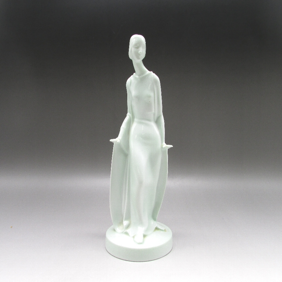 オールドノリタケの白磁色婦人像です。1911年頃~1941年頃にイギリスに輸出され、約100年の時を経て日本に里帰りしてきました。オールドノリタケは現在のノリタケカンパニーが明治末期から戦前までに製造したアンティーク陶磁器の総称です。豪華絢爛な西洋風絵付け陶磁器は海外で人気を博しました。近年では、約100年という長い歳月を経て日本に里帰りしてきたことで、わが国でも大変人気が高くなっており、美術工芸品として高い地位を確保しつつあります。