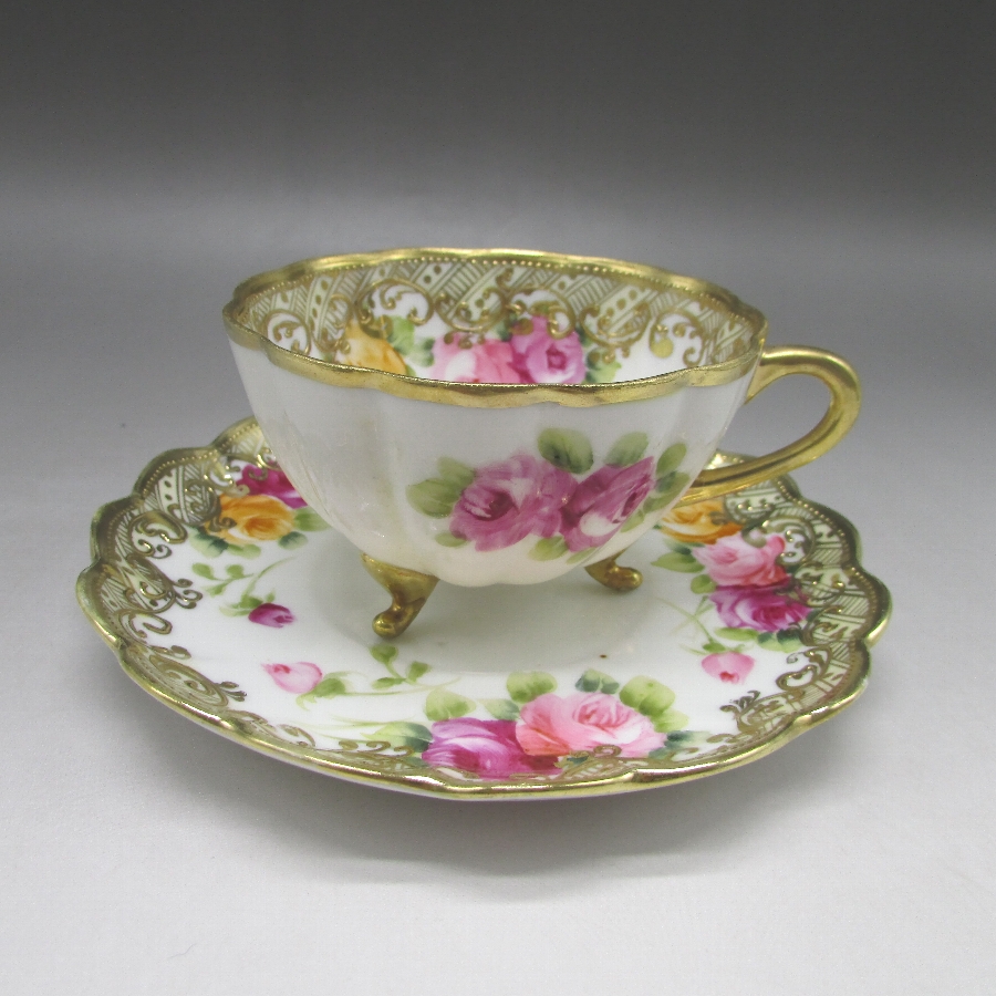 オールドノリタケ 薔薇文脚付カップ&ソーサー