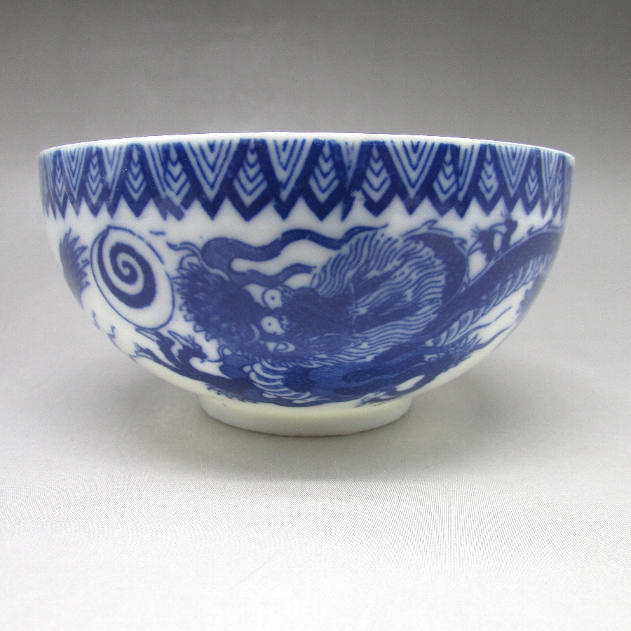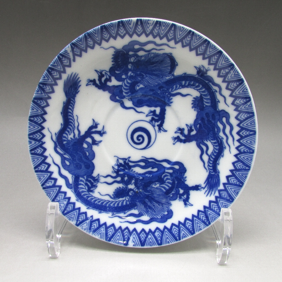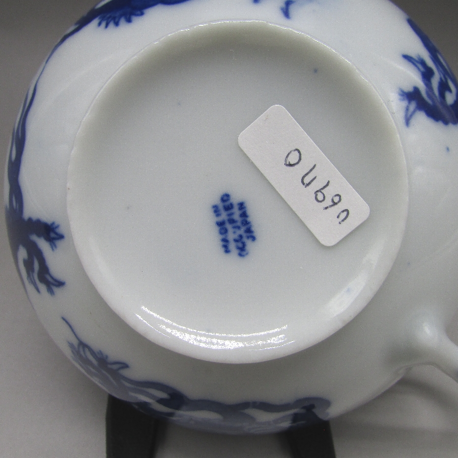 オキュパイド・ジャパンの龍文カップ&ソーサーです。オキュパイド・ジャパンとは日本が連合国軍の占領下にあった1947年から1952年までの間に、日本の輸出品に義務付けられていた「占領下の日本製」という意味の表記です。敗戦直後の厳しい状況にもかかわらず、ものづくりを通して復興を目指し、人々が誇りを取り戻そうとしたエネルギーや熱意が込められています。輸出品であったため国内には数が少なく、今ではコレクターズアイテムとして人気を集めています。