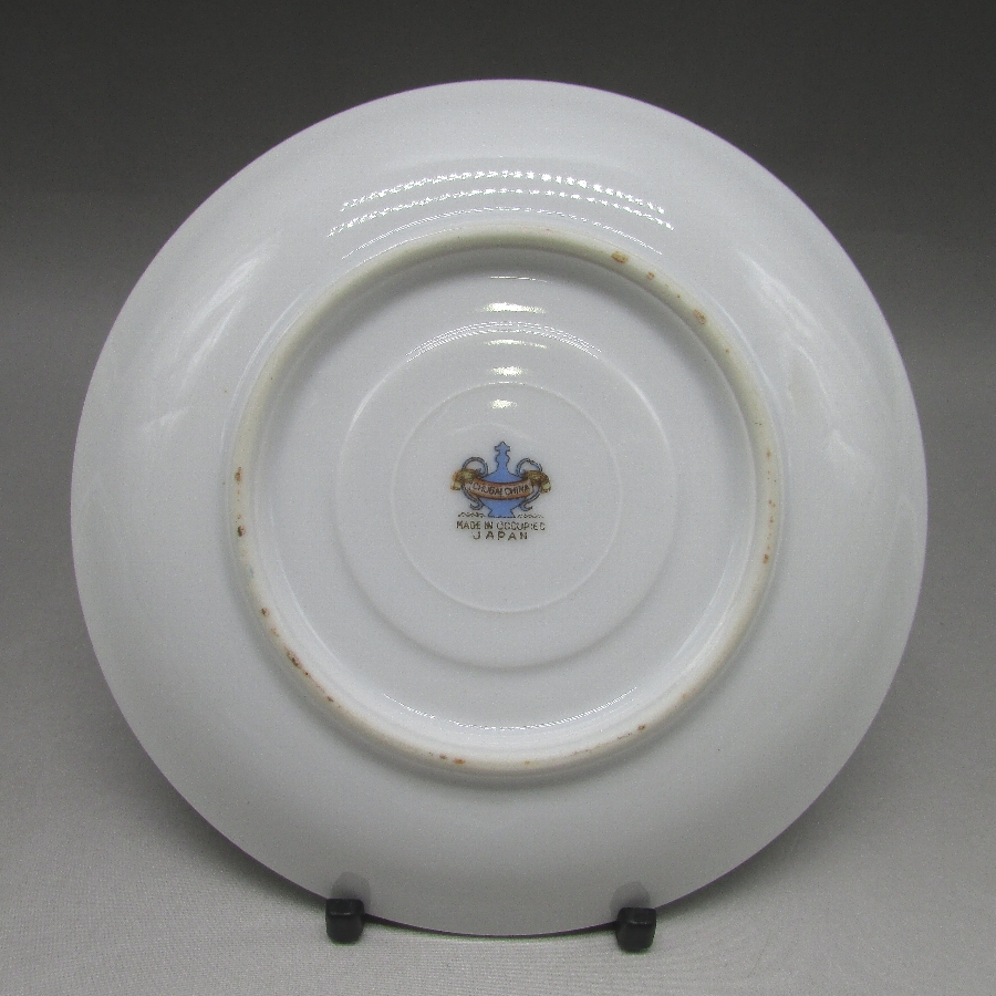 オキュパイド・ジャパンの花文カップ&ソーサーです。オキュパイド・ジャパンとは日本が連合国軍の占領下にあった1947年から1952年までの間に、日本の輸出品に義務付けられていた「占領下の日本製」という意味の表記です。敗戦直後の厳しい状況にもかかわらず、ものづくりを通して復興を目指し、人々が誇りを取り戻そうとしたエネルギーや熱意が込められています。輸出品であったため国内には数が少なく、今ではコレクターズアイテムとして人気を集めています。