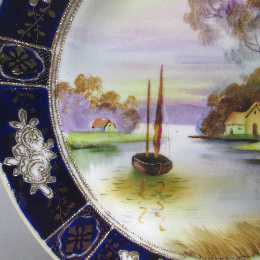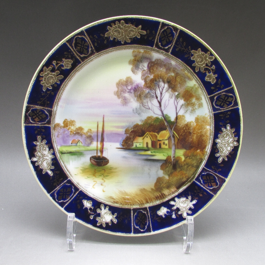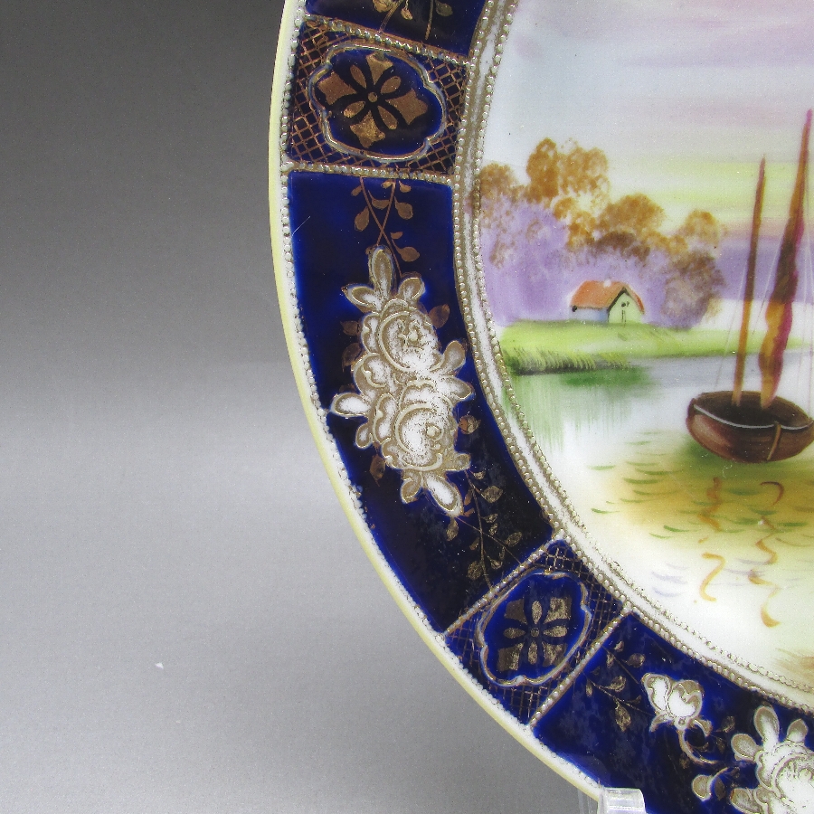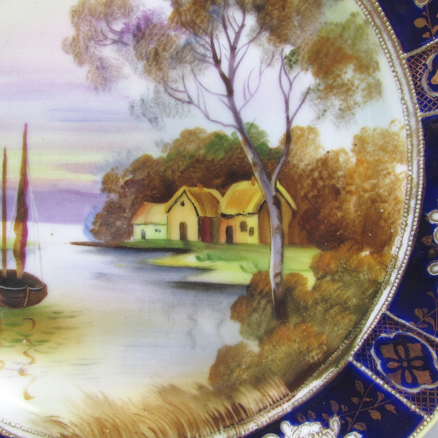 名称 オールドノリタケ コバルト金盛り風景文飾皿