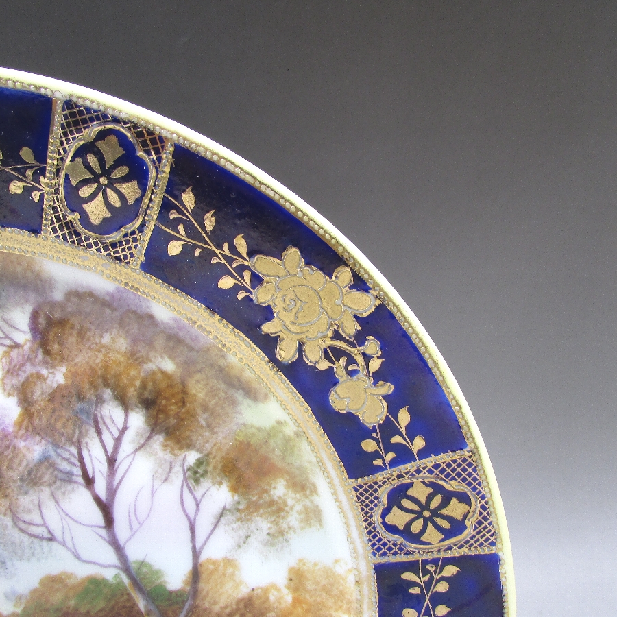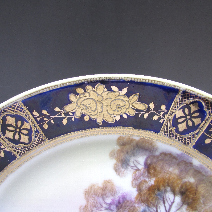 オールドノリタケ コバルト金盛り風景文飾皿