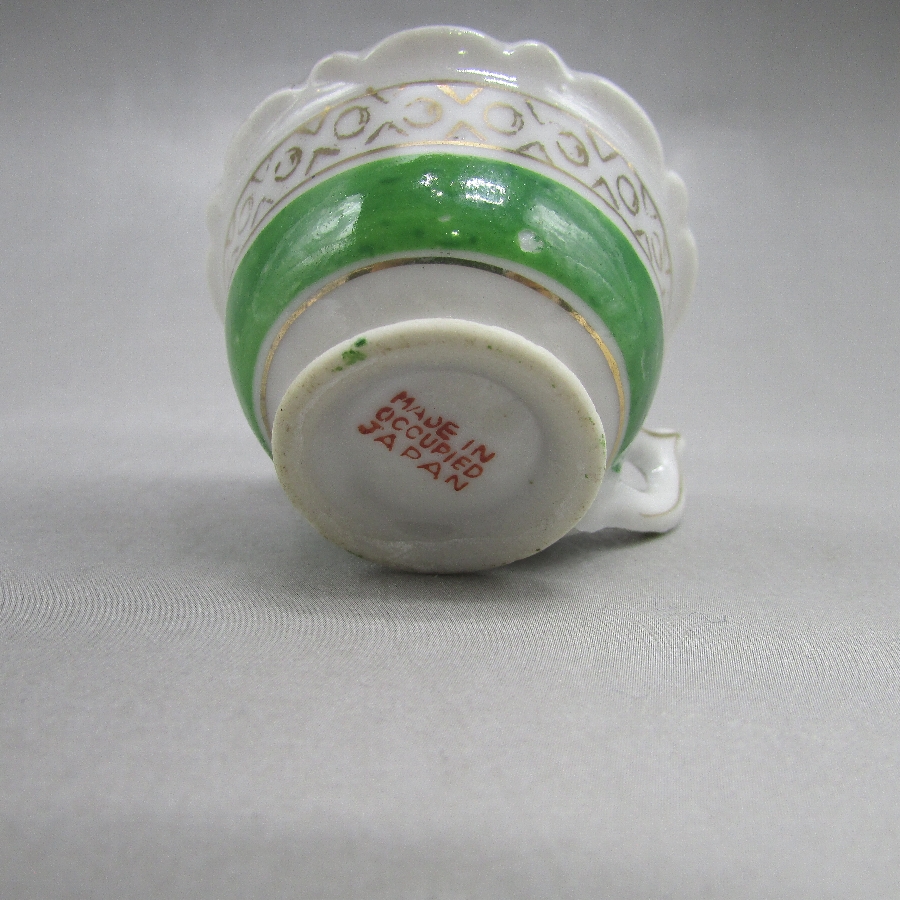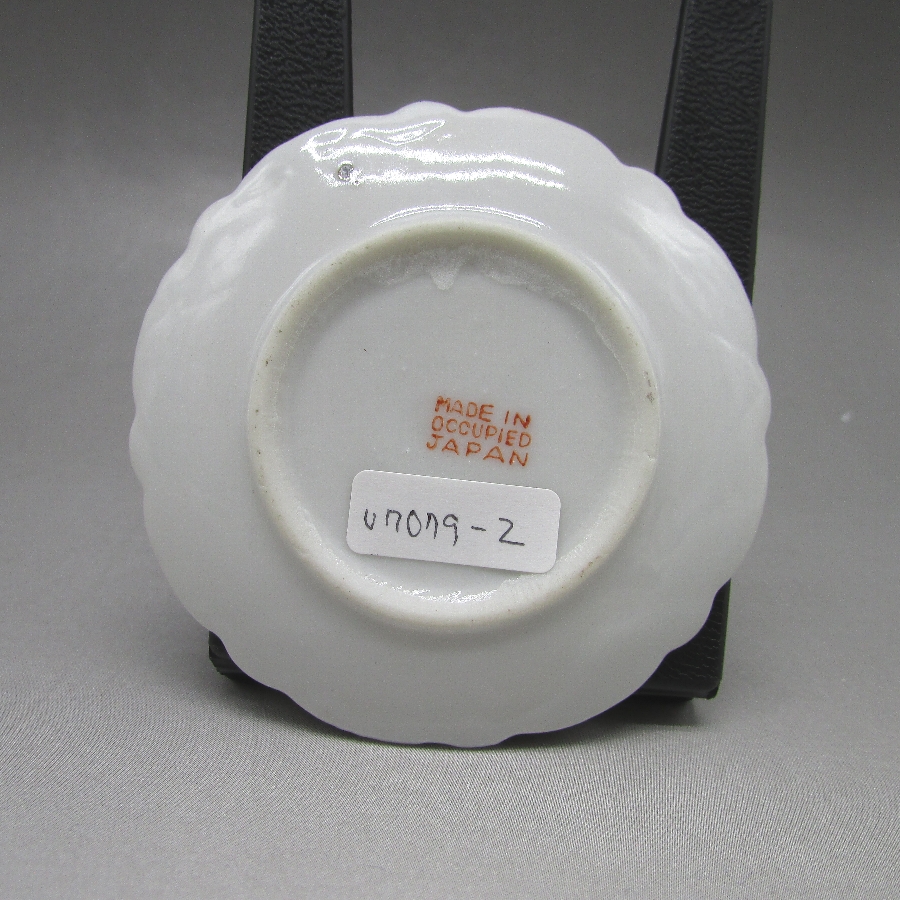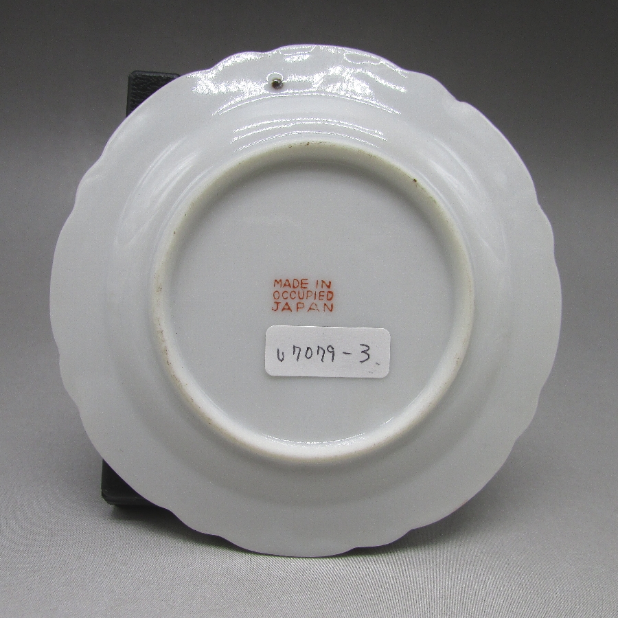 オキュパイド・ジャパンの花文トリオです。オキュパイド・ジャパンとは日本が連合国軍の占領下にあった1947年から1952年までの間に、日本の輸出品に義務付けられていた「占領下の日本製」という意味の表記です。敗戦直後の厳しい状況にもかかわらず、ものづくりを通して復興を目指し、人々が誇りを取り戻そうとしたエネルギーや熱意が込められています。輸出品であったため国内には数が少なく、今ではコレクターズアイテムとして人気を集めています。