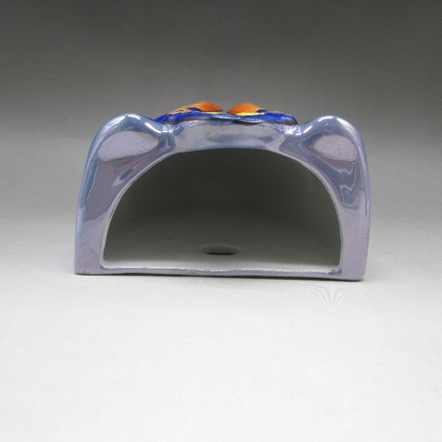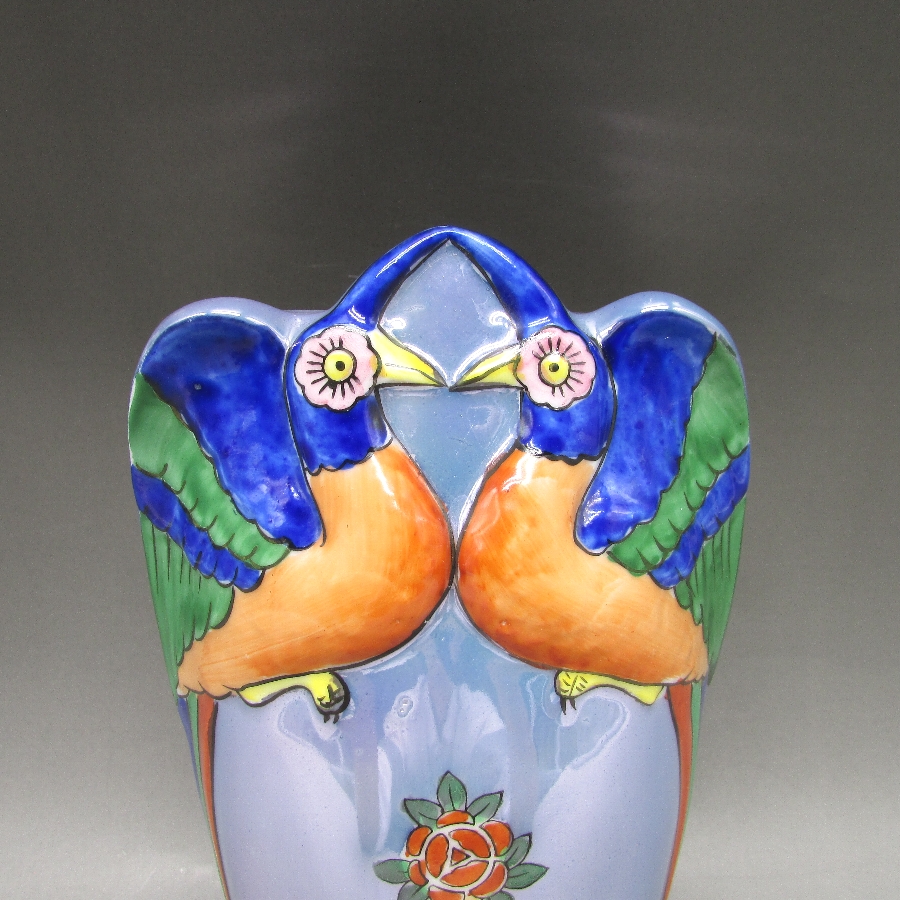 オールドノリタケの鳥モールドウォールポケットです。1924年頃~1935年頃にアメリカに輸出され、約100年の時を経て日本に里帰りしてきました。オールドノリタケは現在のノリタケカンパニーが明治末期から戦前までに製造したアンティーク陶磁器の総称です。豪華絢爛な西洋風絵付け陶磁器は海外で人気を博しました。近年では、約100年という長い歳月を経て日本に里帰りしてきたことで、わが国でも大変人気が高くなっており、美術工芸品として高い地位を確保しつつあります。