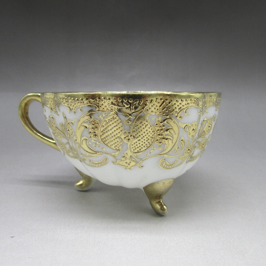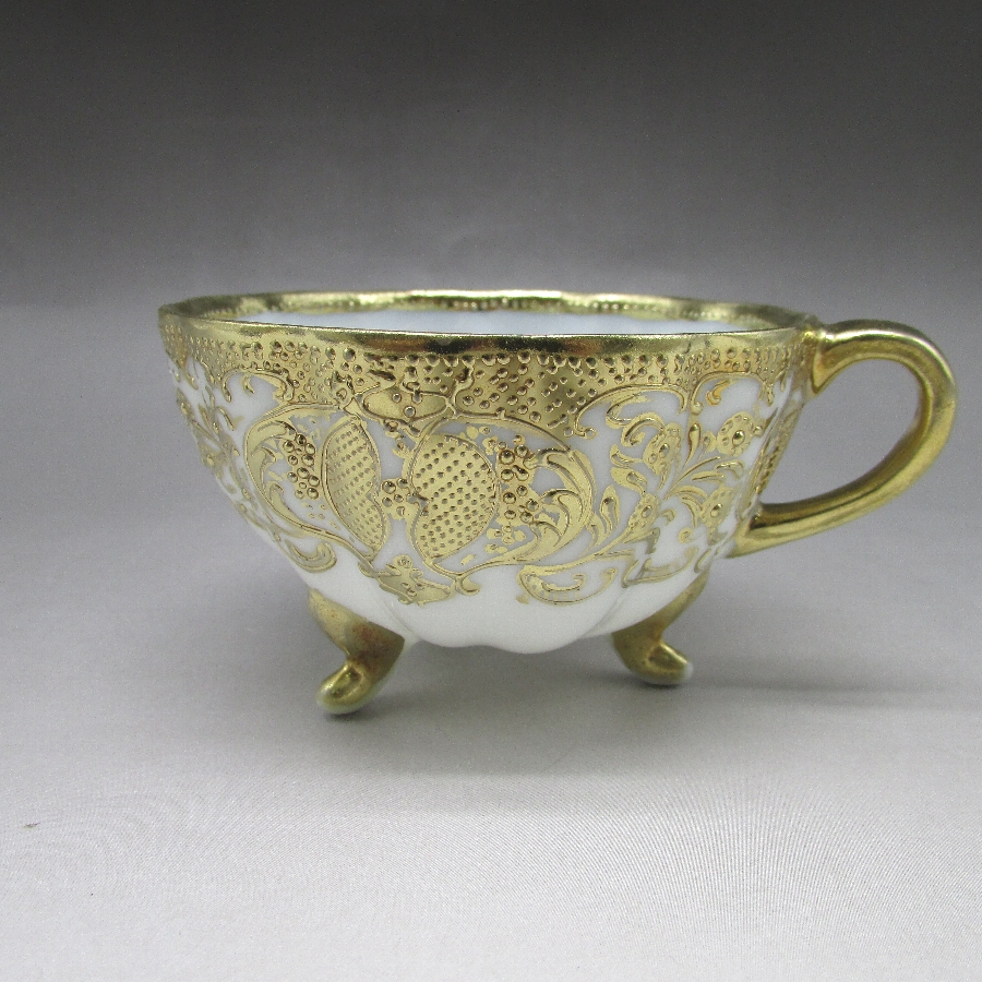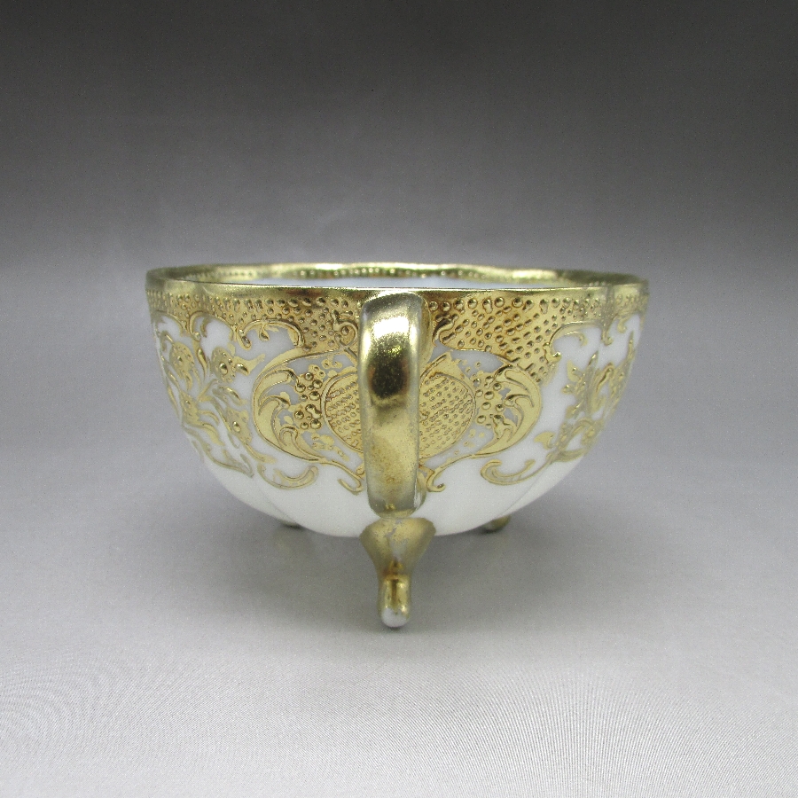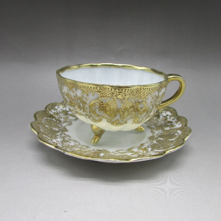 オールドノリタケ 金盛り唐草文足付カップ&ソーサー