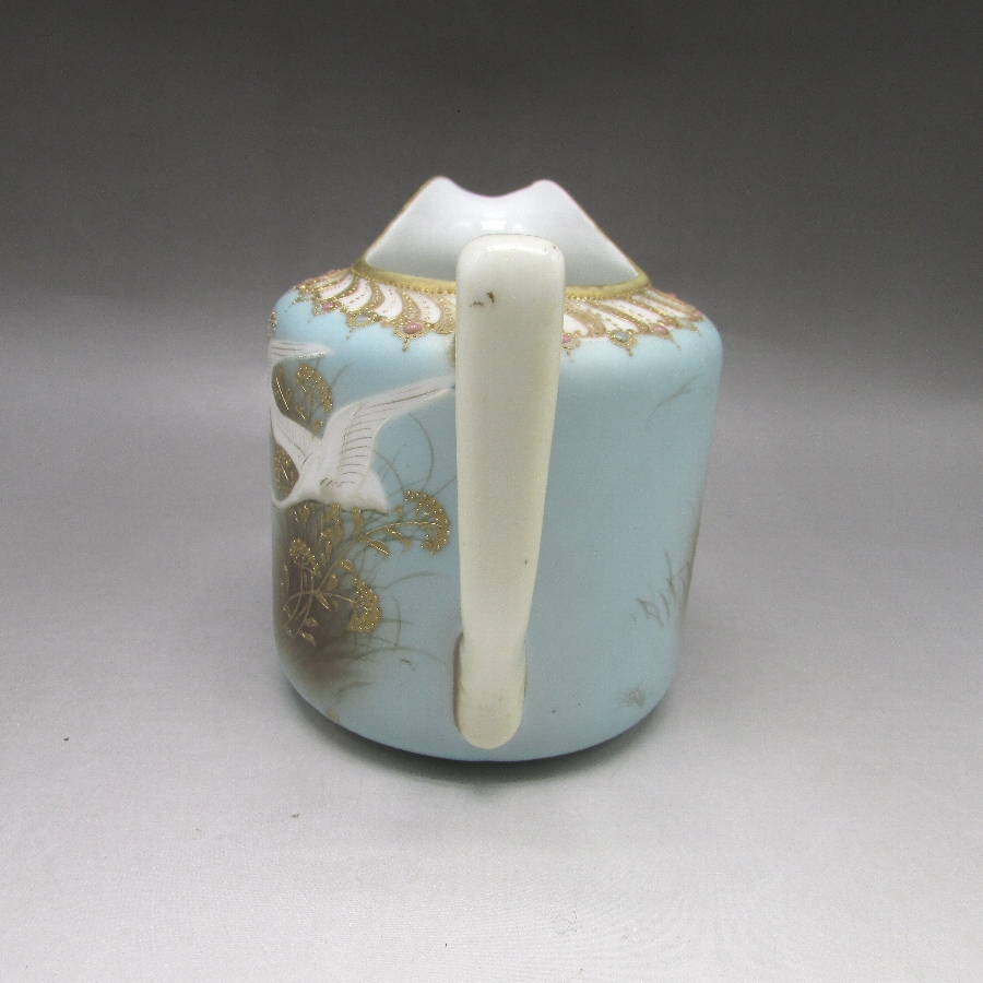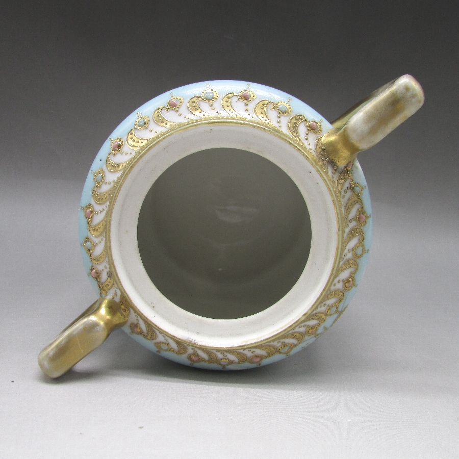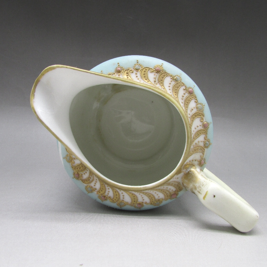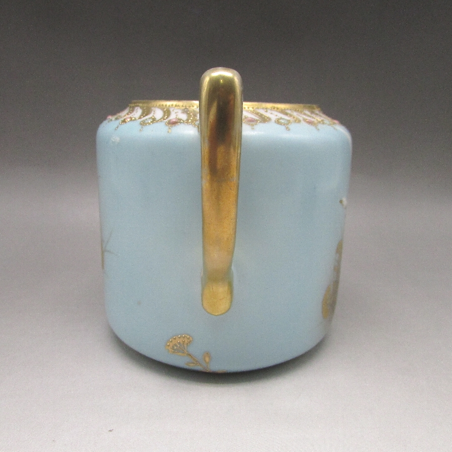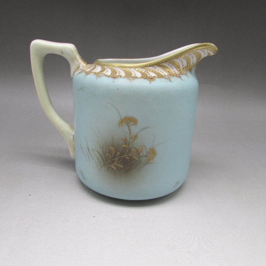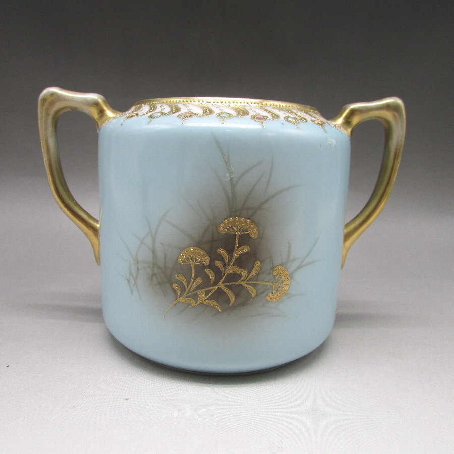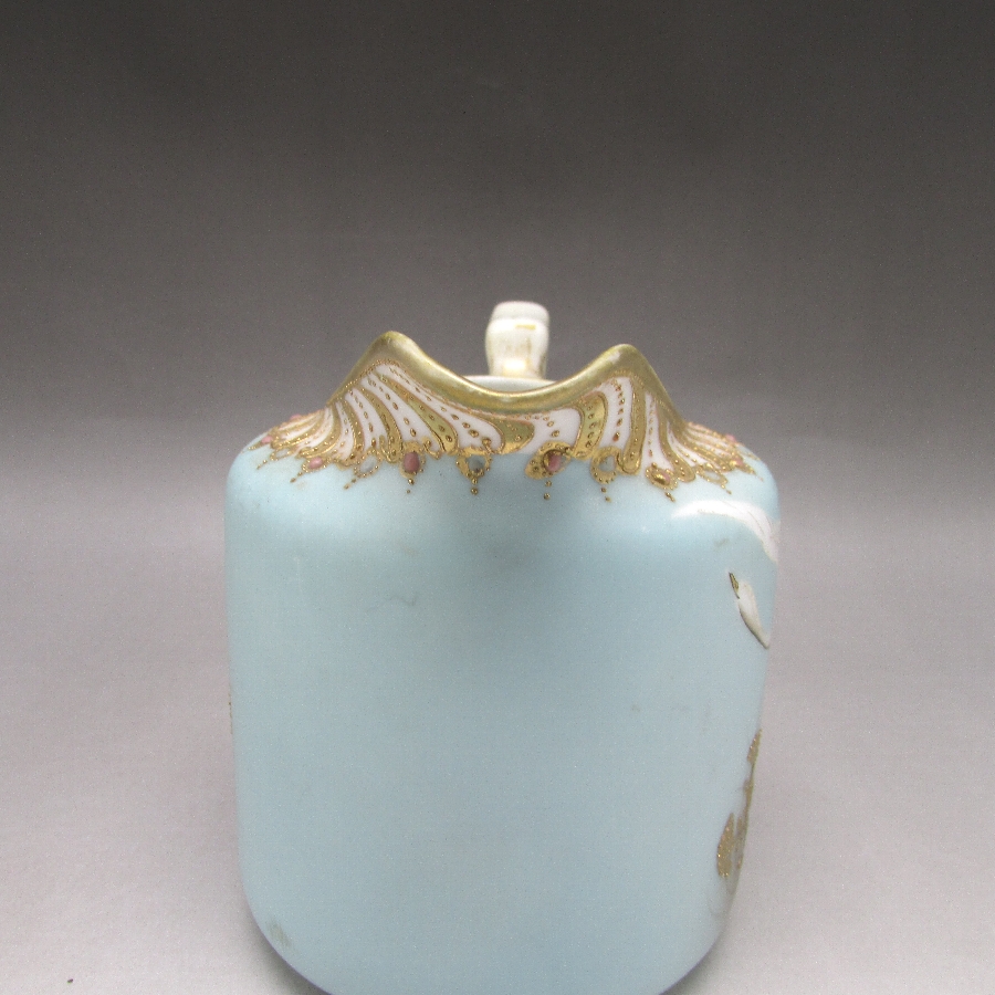 オールドノリタケのフライングスワンシュガー&クリーマーです。1911年頃~1921年頃にアメリカに輸出され、約100年の時を経て日本に里帰りしてきました。オールドノリタケは現在のノリタケカンパニーが明治末期から戦前までに製造したアンティーク陶磁器の総称です。豪華絢爛な西洋風絵付け陶磁器は海外で人気を博しました。近年では、約100年という長い歳月を経て日本に里帰りしてきたことで、わが国でも大変人気が高くなっており、美術工芸品として高い地位を確保しつつあります。