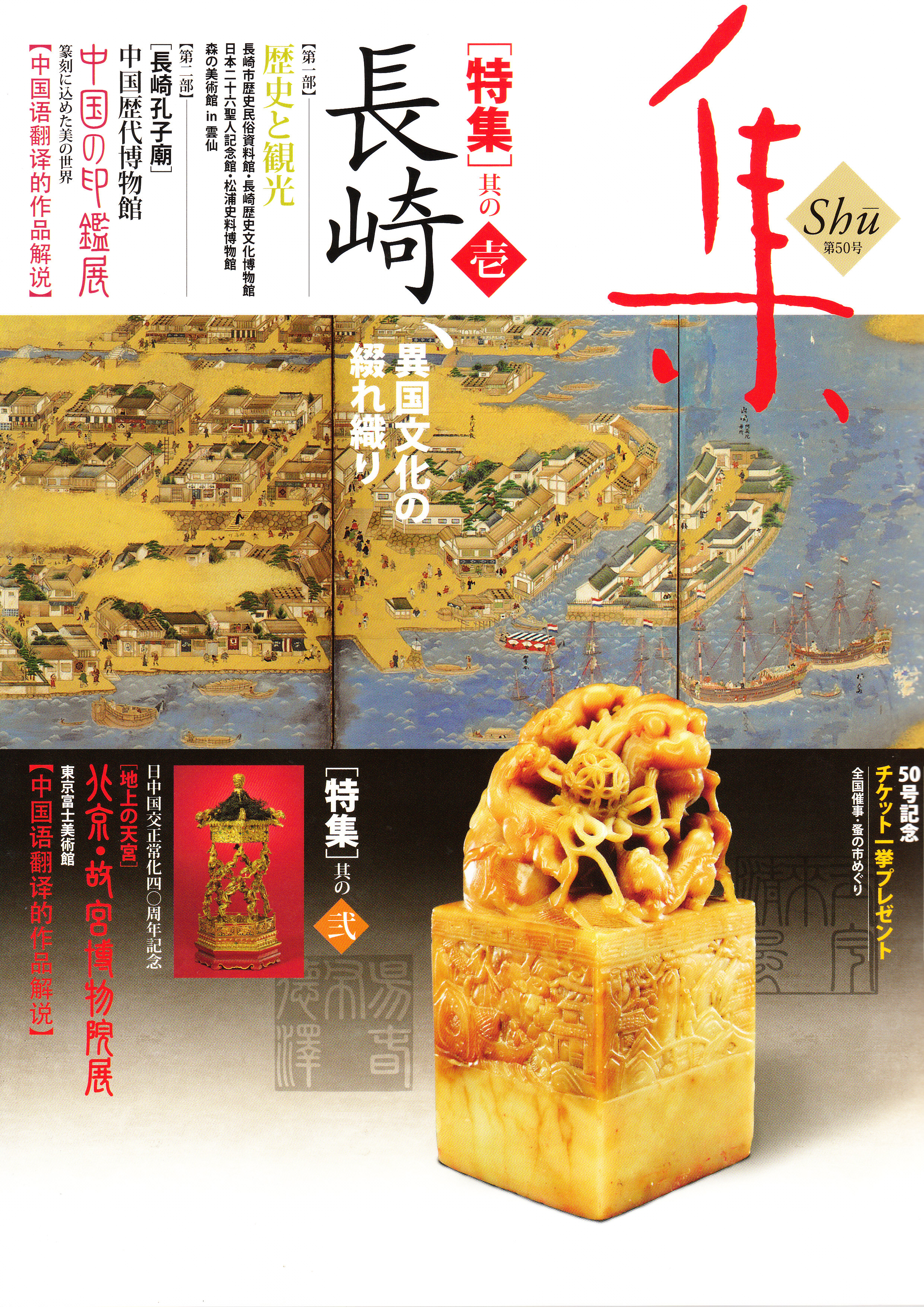今年は日中国交正常化40周年ということで、記念すべき50号の巻頭特集は、江戸時代の鎖国期にあっても中国と密接な交易関係にあった「長崎」を取り上げました。郷土資料を展示する長崎市歴史民俗資料館、長崎奉行所を再現した長崎歴史文化博物館、キリシタン文化の遺品を展示する日本二十六聖人記念館、千年の歴史を誇る松浦家の至宝を集めた松浦史料博物館、長崎南画と舶来清人の書画を豊富に所蔵する森の美術館 in 雲仙などを紹介し、長崎ならではのユニークな作品が満載です。また、長崎で訪ねたい骨董店、旅の宿、長崎名物「卓袱料理」も楽しめます。