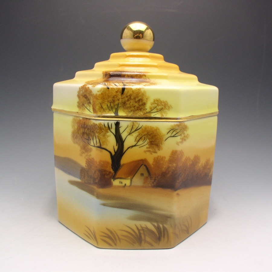 オールドノリタケ 夕焼湖畔風景文キャンディージャー