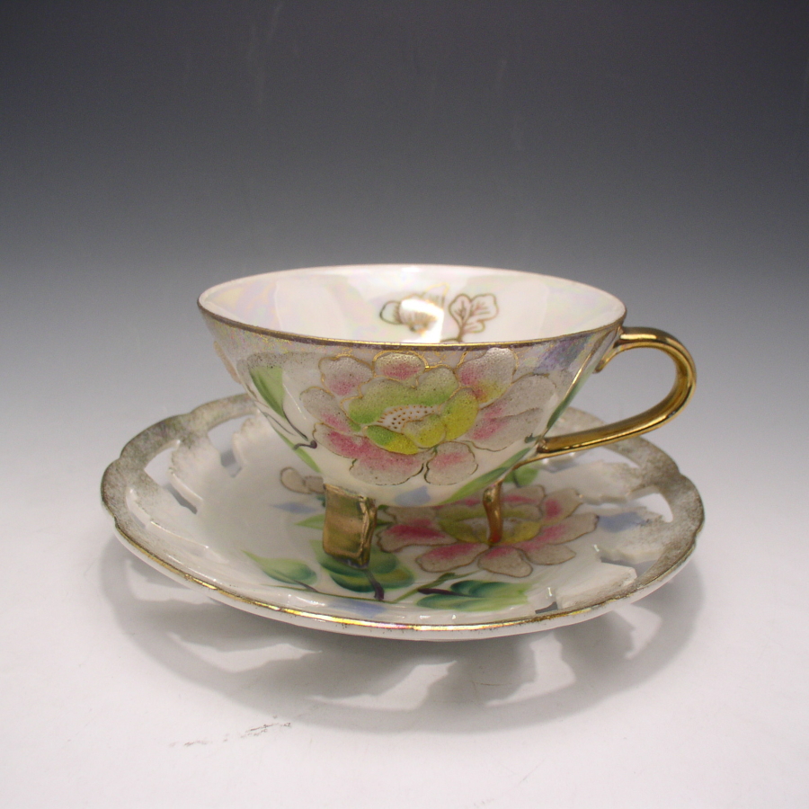 オールド・ジャパンが海外向けに作陶したコラレン装飾を施した花文カップ&ソーサーです。