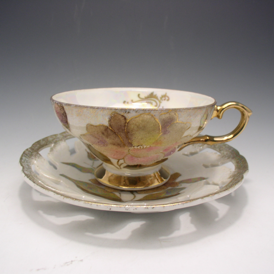 オールド・ジャパンが海外向けに作陶したコラレン装飾を施した花文カップ&ソーサーです。