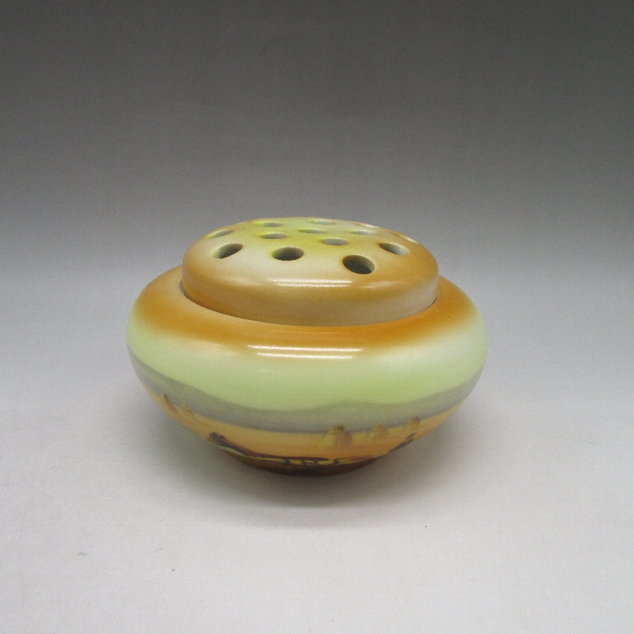 オールドノリタケの牧場馬文ポプリポットです。1906年頃~1925年頃にイギリスに輸出され、約100年の時を経て日本に里帰りしてきました。