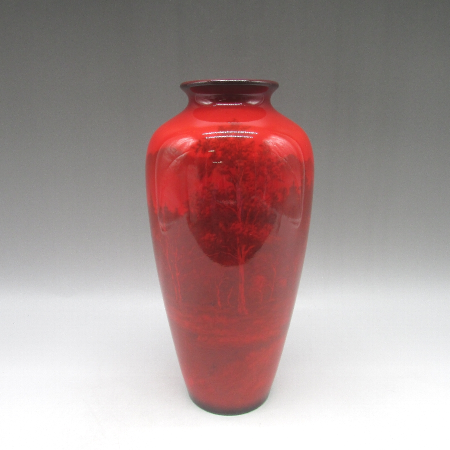 M.Ijiriサイン入り辰砂自然風景文花瓶の画像