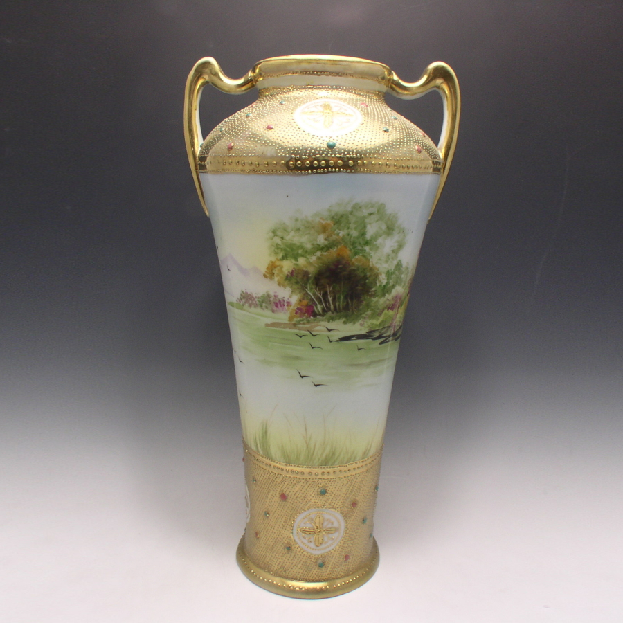 オールドノリタケ ビーディングジュール湖畔風景文花瓶