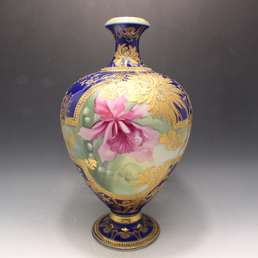 名称 オールドノリタケ コバルト金盛カトレア花文花瓶