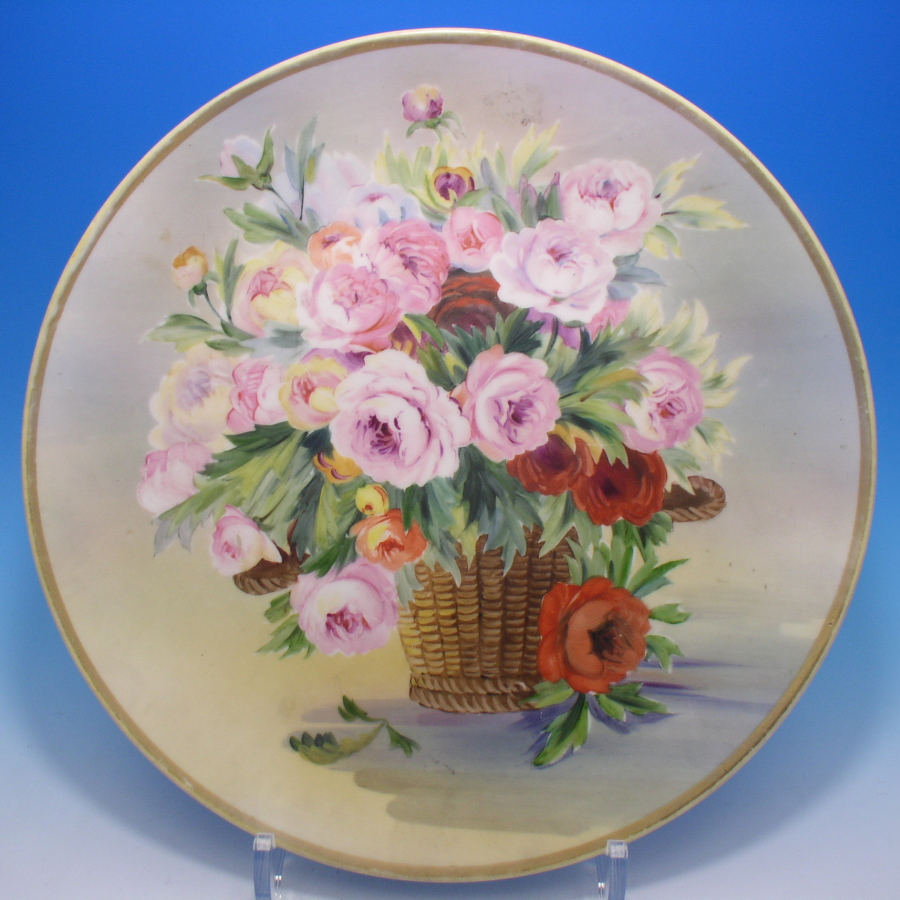 オールドノリタケの花文飾皿です。1911年頃~1921年頃にアメリカに輸出され、約100年の時を経て日本に里帰りしてきました。オールドノリタケは現在のノリタケカンパニーが明治末期から戦前までに製造したアンティーク陶磁器の総称です。豪華絢爛な西洋風絵付け陶磁器は海外で人気を博しました。近年では、約100年という長い歳月を経て日本に里帰りしてきたことで、わが国でも大変人気が高くなっており、美術工芸品として高い地位を確保しつつあります。