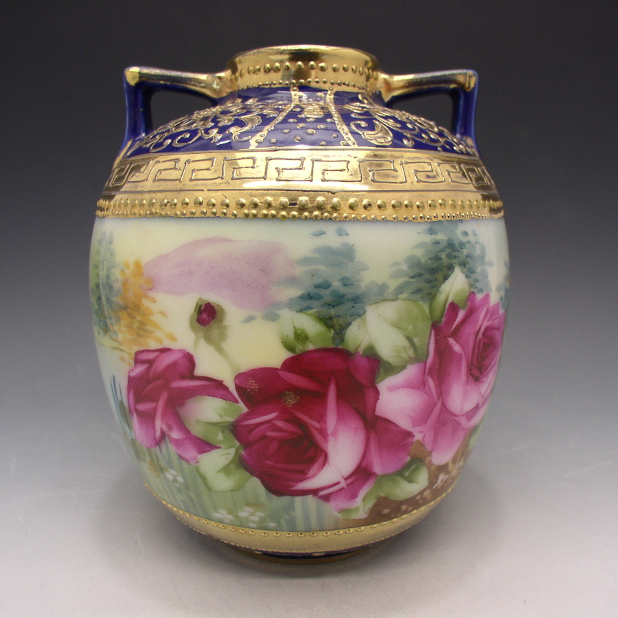 名称  オールドノリタケ コバルト金盛薔薇文花瓶
