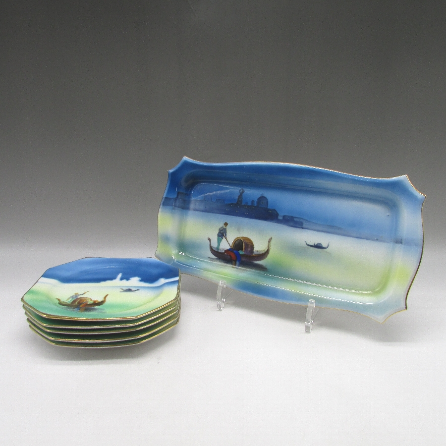 オールドノリタケの釣船人文プレートセットです。1911年頃~1941年頃にイギリスに輸出され、約100年の時を経て日本に里帰りしてきました。釣船デザインは欧米で「Man