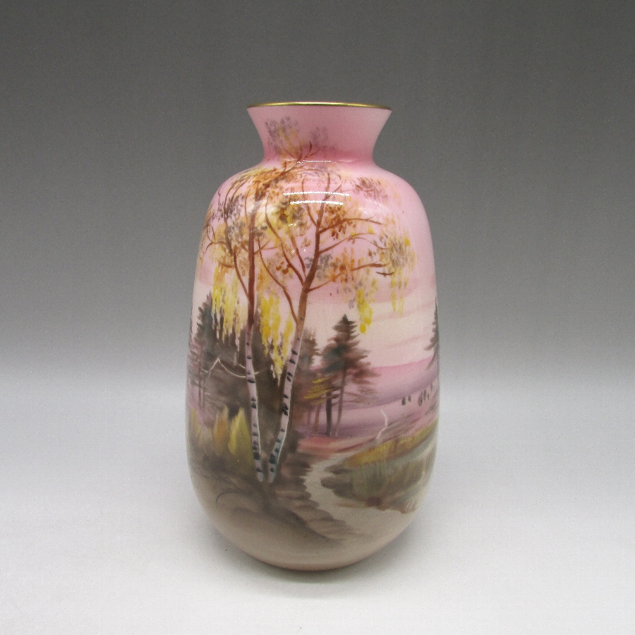 トップ > ラインナップ > プレミアノリタケの作品一覧 Vol.001 > プレミアノリタケ S.Kimuraサイン入山林風景文花瓶