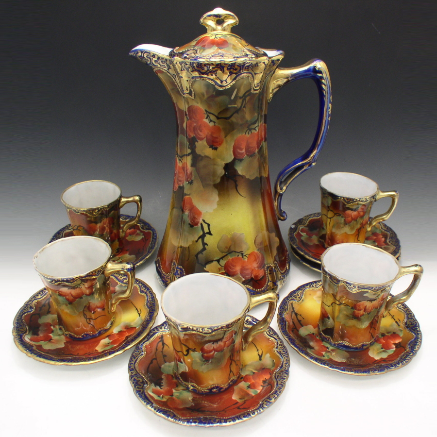 オールドノリタケ コバルト黒フサスグリ模様チョコレートセット