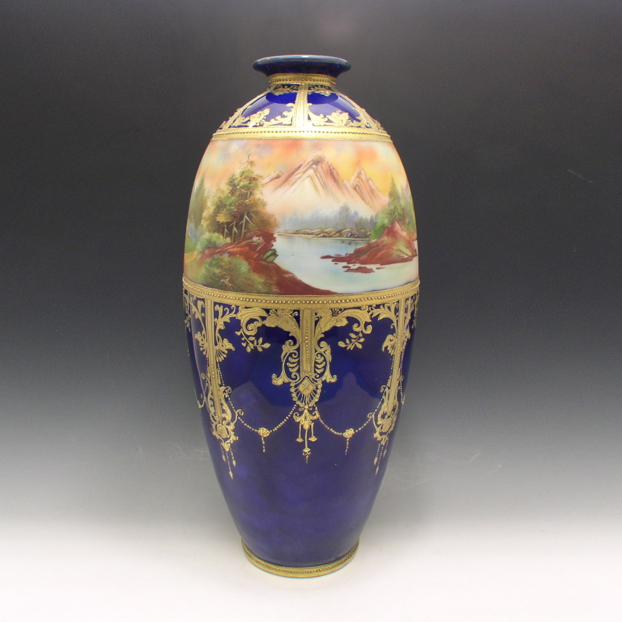 名称  オールドノリタケ コバルト金盛山岳風景文花瓶