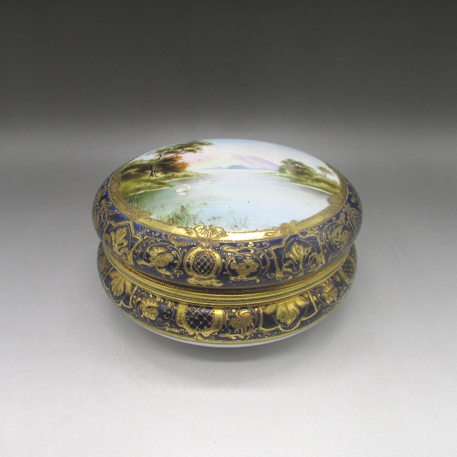 トップ > ラインナップ > オールドノリタケの作品一覧 Vol.012 > オールドノリタケ コバルト金盛風景文クッキージャー