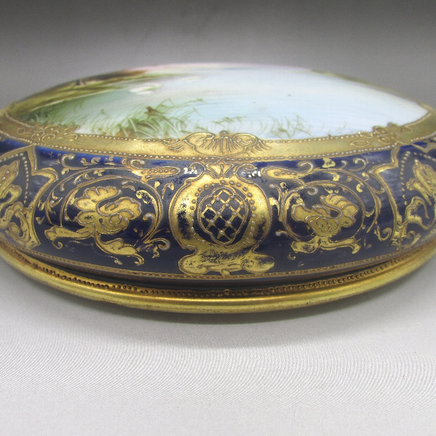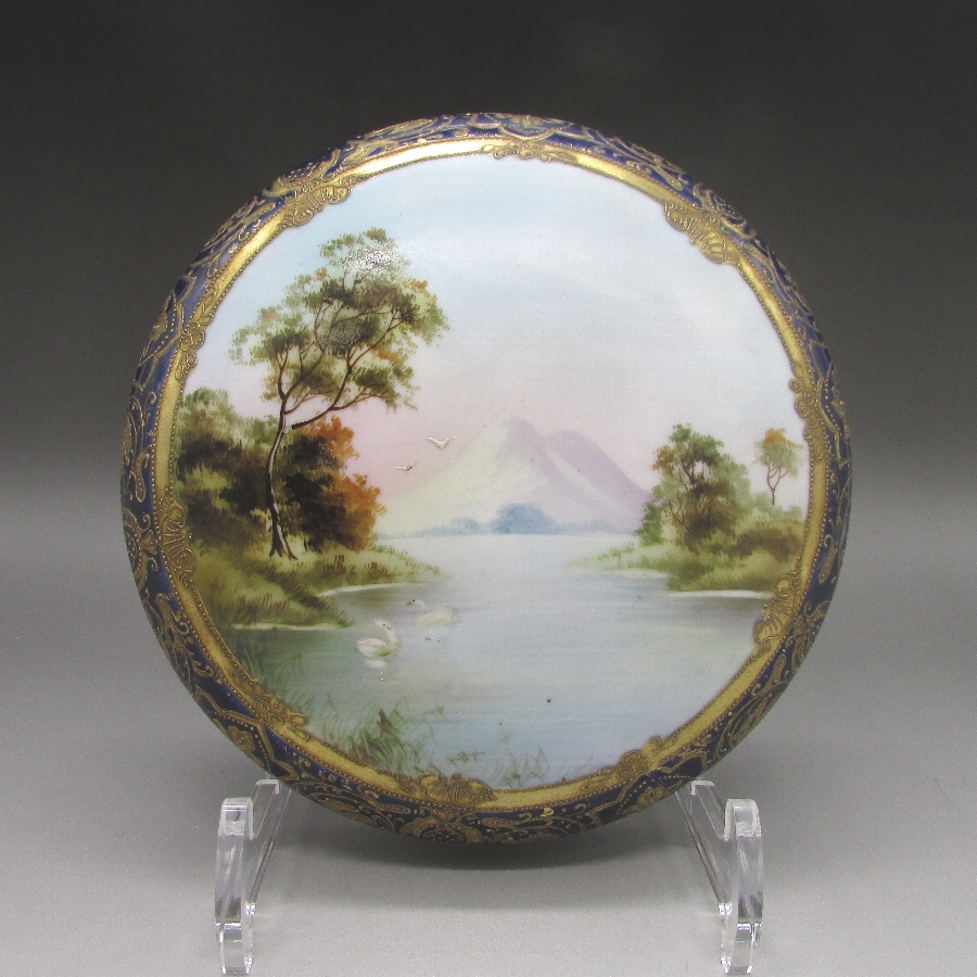 オールドノリタケ コバルト金盛風景文クッキージャー