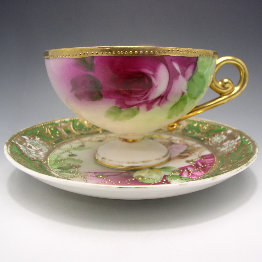 オールドノリタケ 金盛ジュール薔薇文カップ&ソーサー