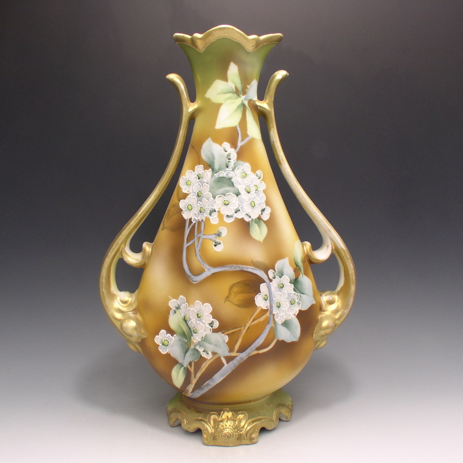 名称  オールドノリタケ 白花盛上ハープ形花瓶