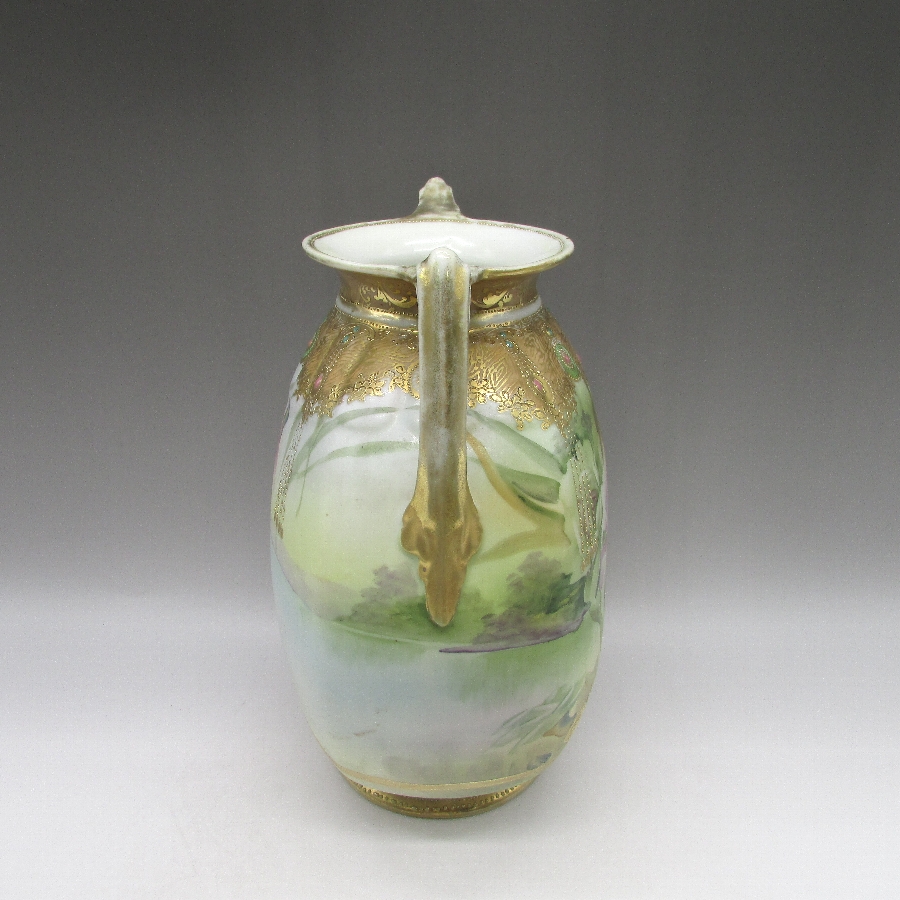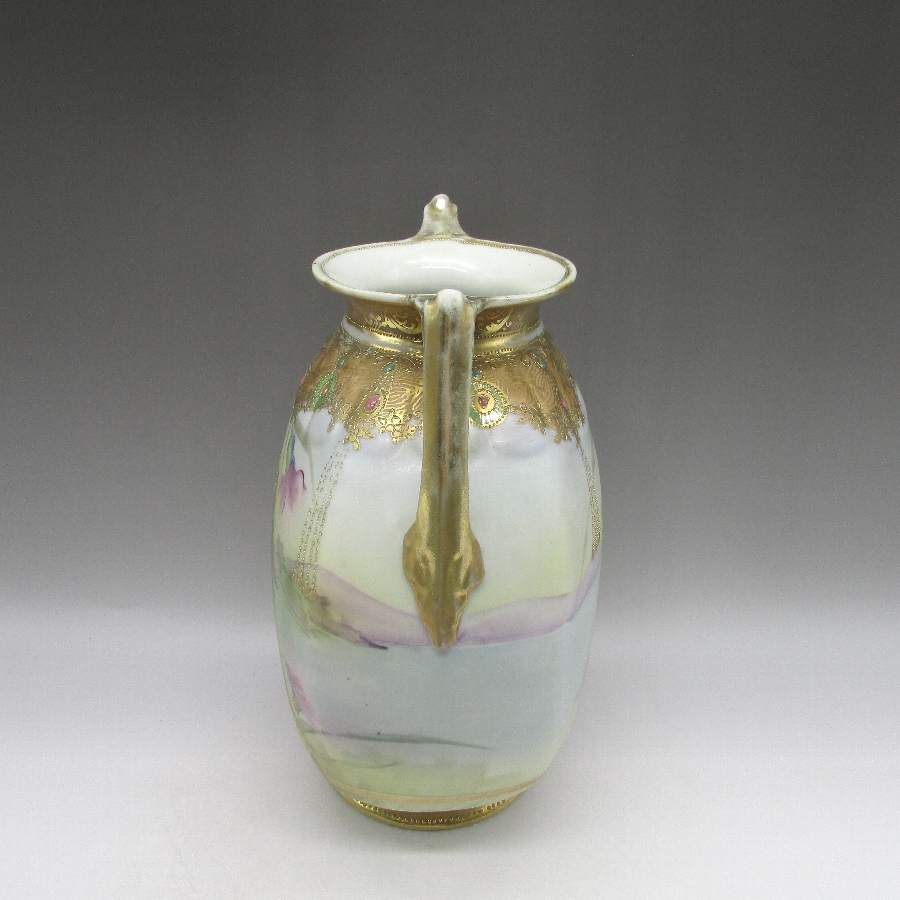 オールドノリタケ ジュール湖畔風景花文花瓶 u1717_10