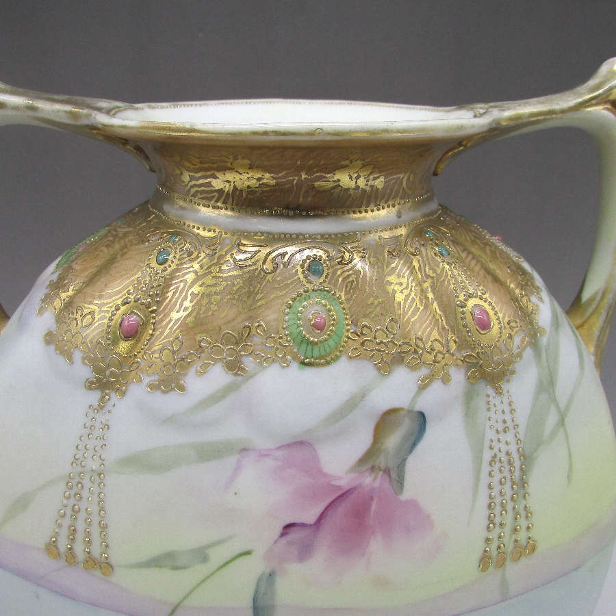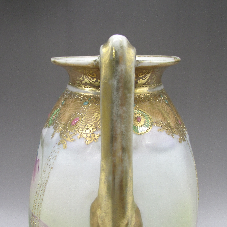 オールドノリタケ ジュール湖畔風景花文花瓶 u1717_4