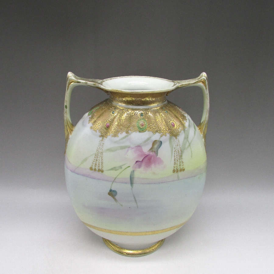 オールドノリタケ ジュール湖畔風景花文花瓶 u1717_2