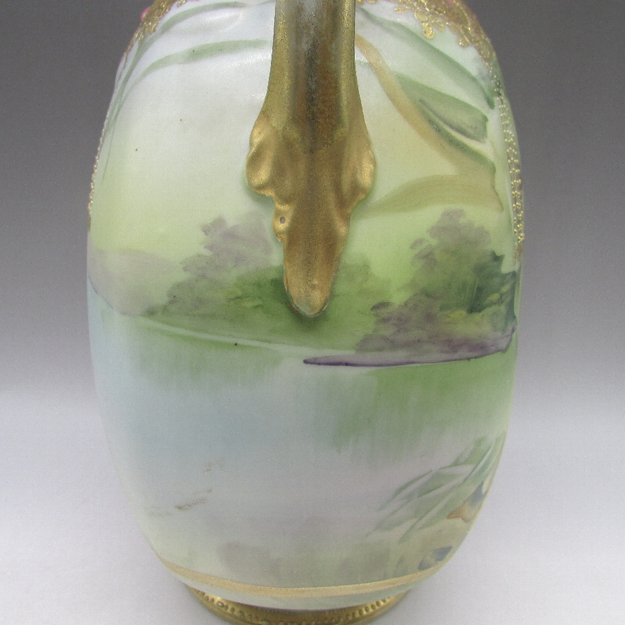 オールドノリタケ ジュール湖畔風景花文花瓶 u1717_11