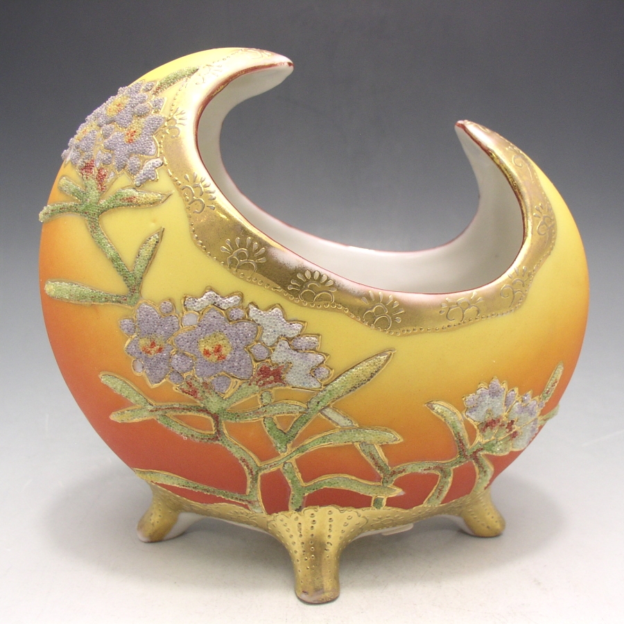 コラレン装飾が用いられた謎多き作品がアメリカより約100年の時を経て日本に里帰りしました。こちらのコラレン葵花文月形花瓶は明治時代に突如現れましたが、アールデコ期にはほとんど見る事はなくなってしまいました。その作陶期間が短い事もありコレクターズアイテムとして確率されています。