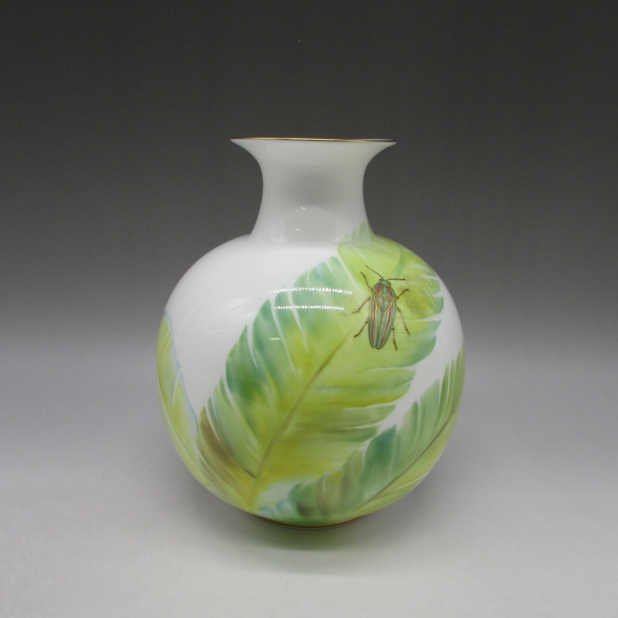 オールドノリタケのボーンチャイナg.katoサイン入蛍文花瓶の作品説明