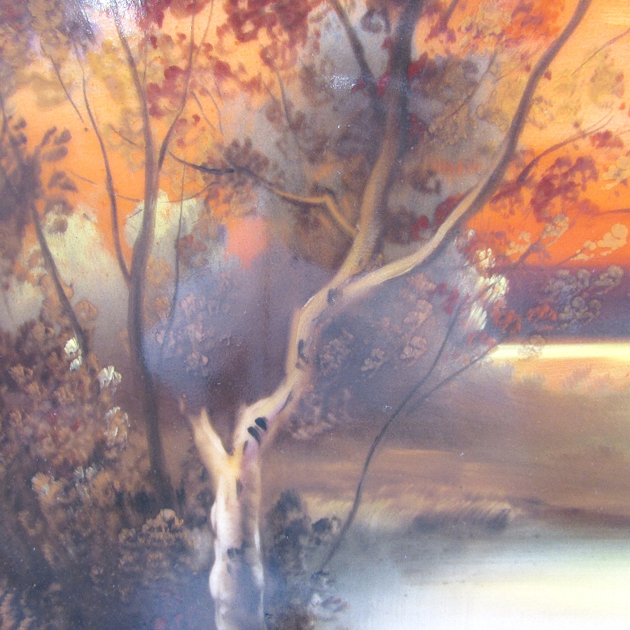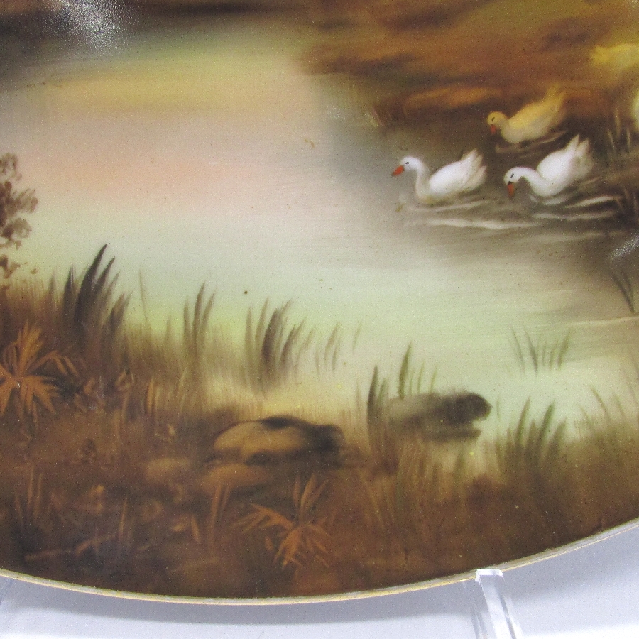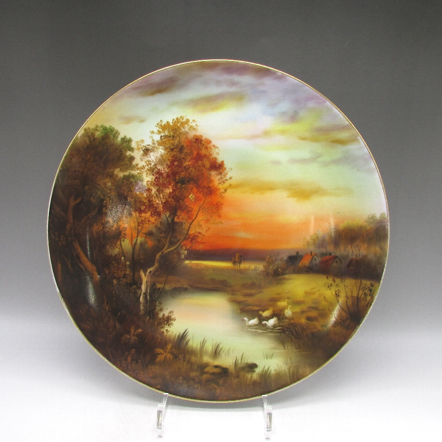 オールドノリタケ K.Wanamiサイン入夕焼け湖畔白鳥文飾皿 u1963_28