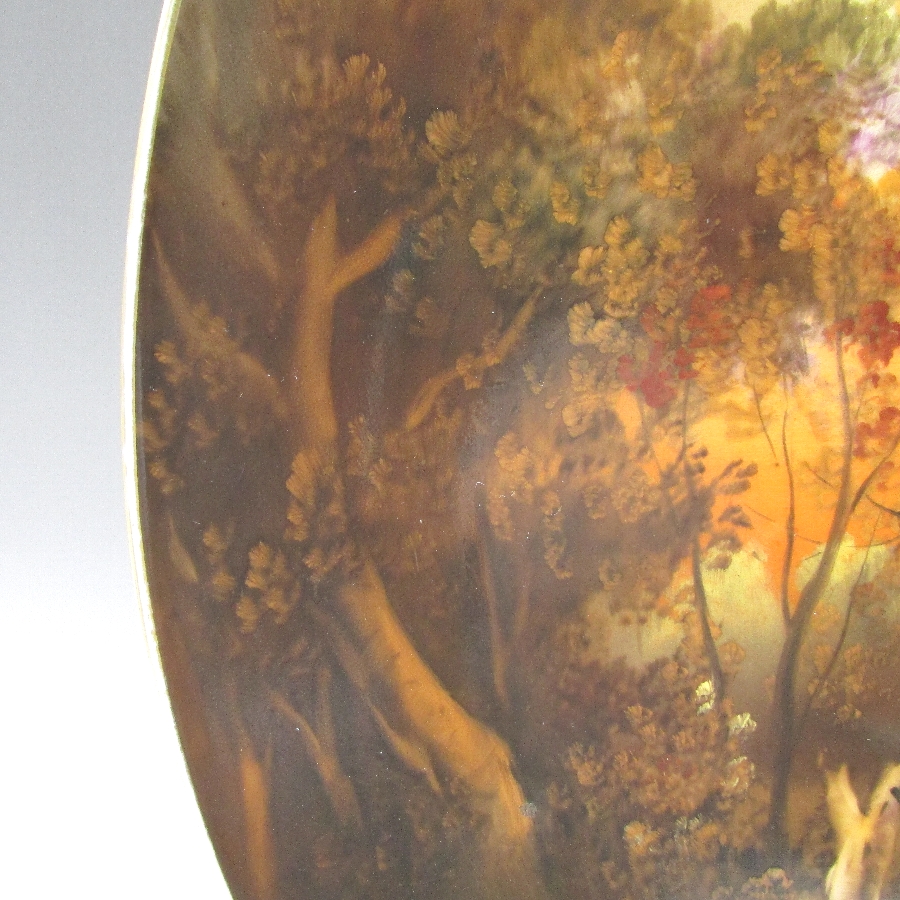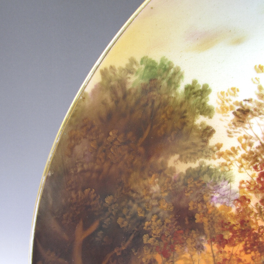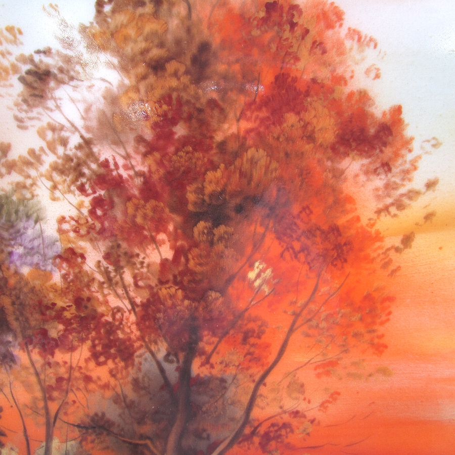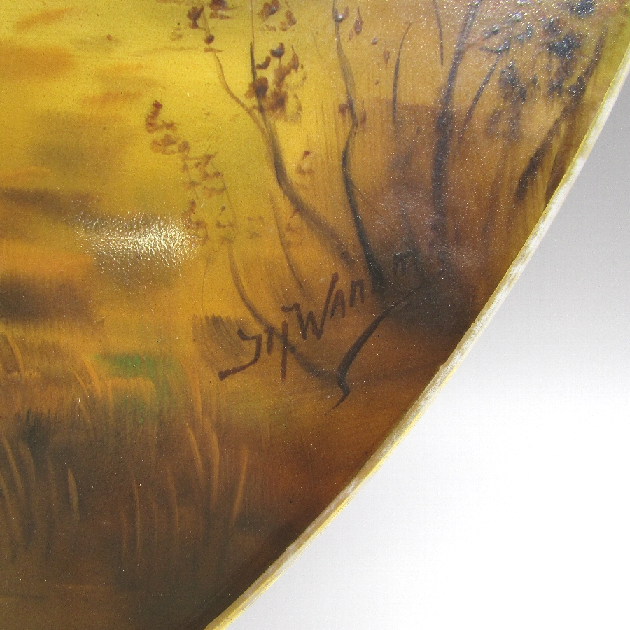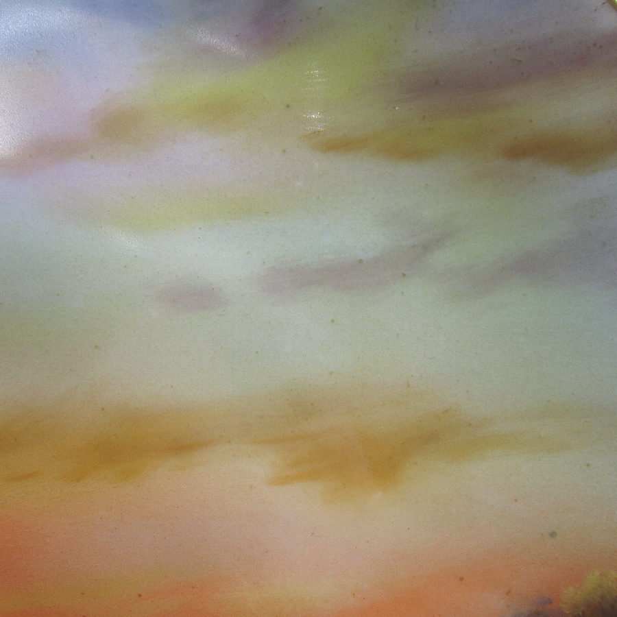 オールドノリタケ K.Wanamiサイン入夕焼け湖畔白鳥文飾皿 u1963_15