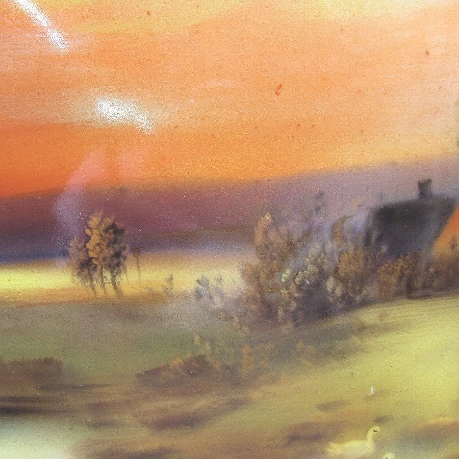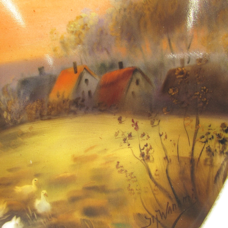 オールドノリタケ K.Wanamiサイン入夕焼け湖畔白鳥文飾皿 u1963_8