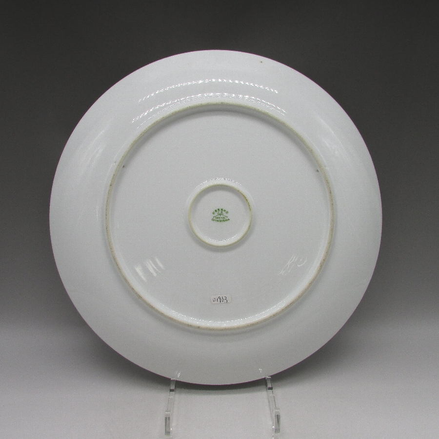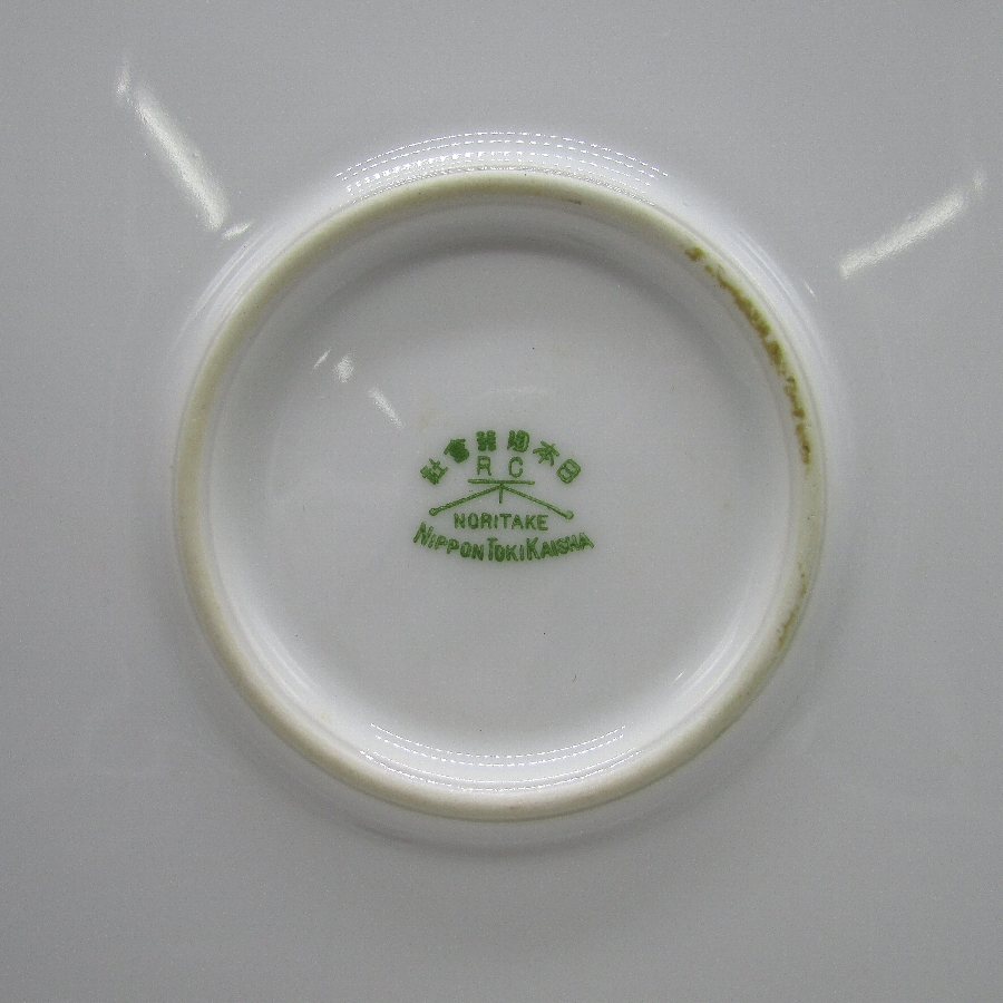 オールドノリタケのK.Wanamiサイン入夕焼け湖畔白鳥文飾皿です。1911年頃~1940年頃にアメリカに輸出され、約100年の時を経て日本に里帰りしてきました。「K.Wanami」というサインが入っていますが、現在の研究では詳細がわかっていません。しかし、画工のサインの入った作品は市場相場を離れて、戦前のオールドノリタケや戦後のプレミアノリタケの中で最も芸術性・工芸性の高い作品です。日本陶器では同仁会の中の技芸科が画工の養成機関として存在しており、日本画や洋画、彫刻部門があり、その中で特に優れた画工のみが許されたものが画工サインであると考えられます。