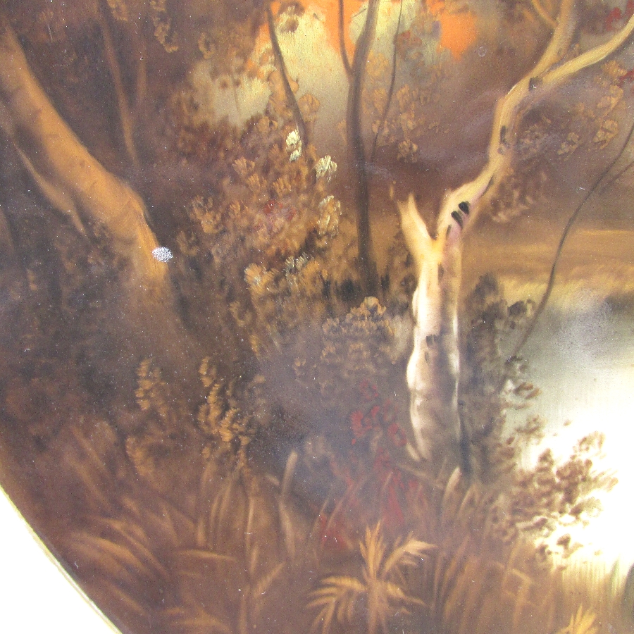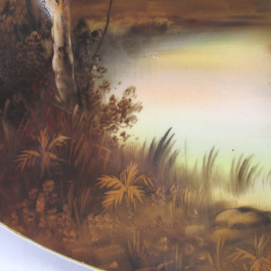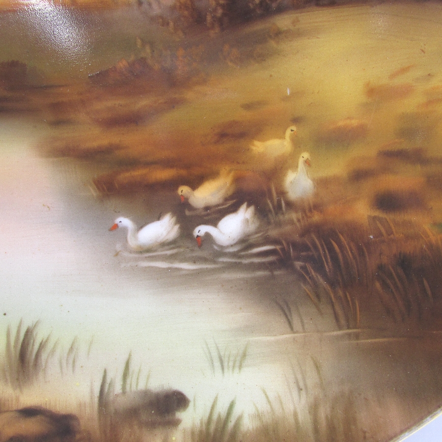 オールドノリタケ K.Wanamiサイン入夕焼け湖畔白鳥文飾皿 u1963_13