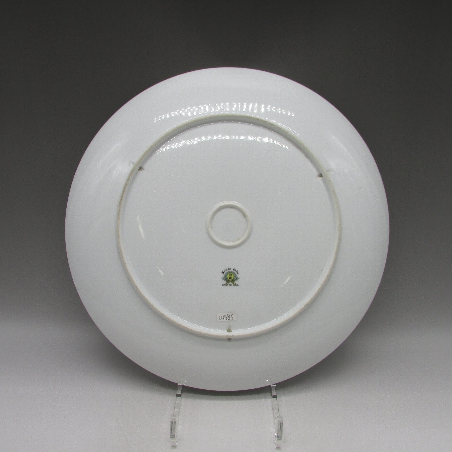 オールドノリタケのs.ogawaサイン入山水風景文飾皿です。1935年頃~1943年頃にアメリカに輸出され、約100年の時を経て日本に里帰りしてきました。「s.ogawa」というサインが入っていますが、現在の研究では詳細がわかっていません。しかし、画工のサインの入った作品は市場相場を離れて、戦前のオールドノリタケや戦後のプレミアノリタケの中で最も芸術性・工芸性の高い作品です。日本陶器では同仁会の中の技芸科が画工の養成機関として存在しており、日本画や洋画、彫刻部門があり、その中で特に優れた画工のみが許されたものが画工サインであると考えられます。