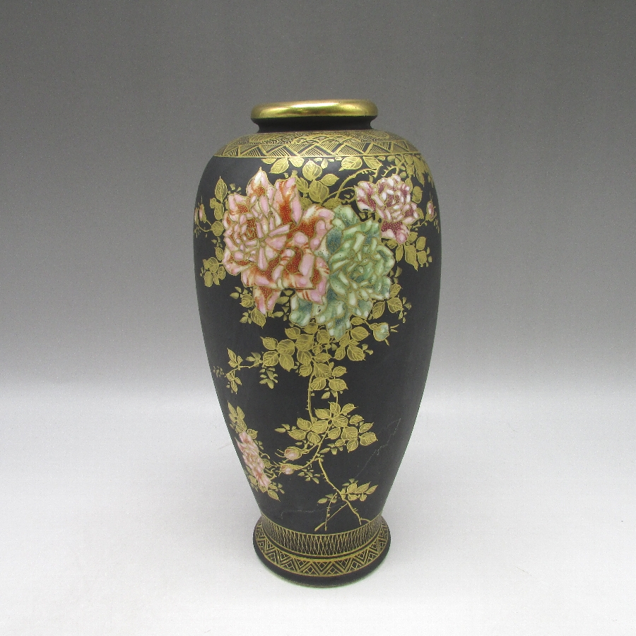 名称 薩摩焼 仙山 黒地金彩草花文花瓶