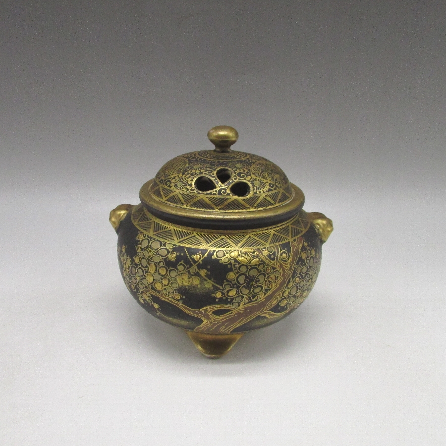 薩摩焼 日光山 黒地金彩木の実文香炉