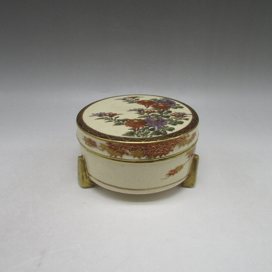 薩摩焼 色絵花文香合 u2141-1_01