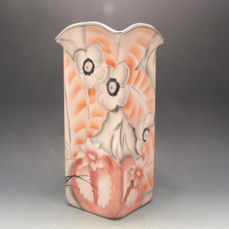 オールドノリタケのアールデコ草花文花瓶の作品説明