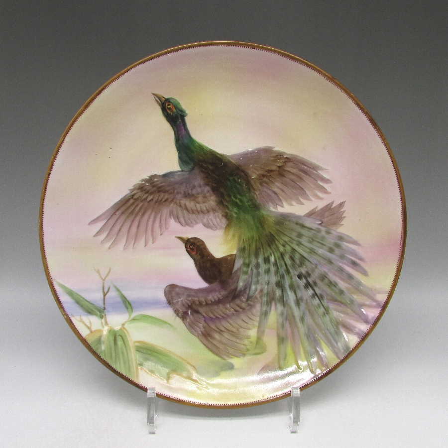 オールドノリタケのモールド雉文飾皿です。1921年頃~1941年頃にアメリカに輸出され、約100年の時を経て日本に里帰りしてきました。「The