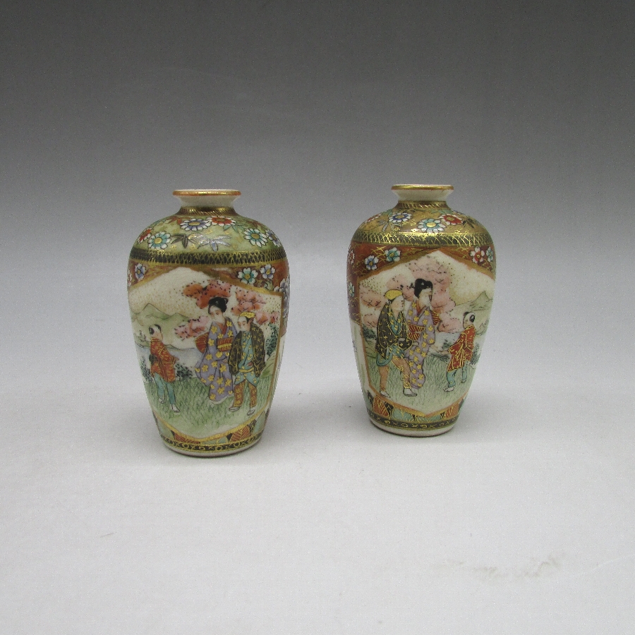 薩摩焼 楠部 桜人物風景文花瓶一対