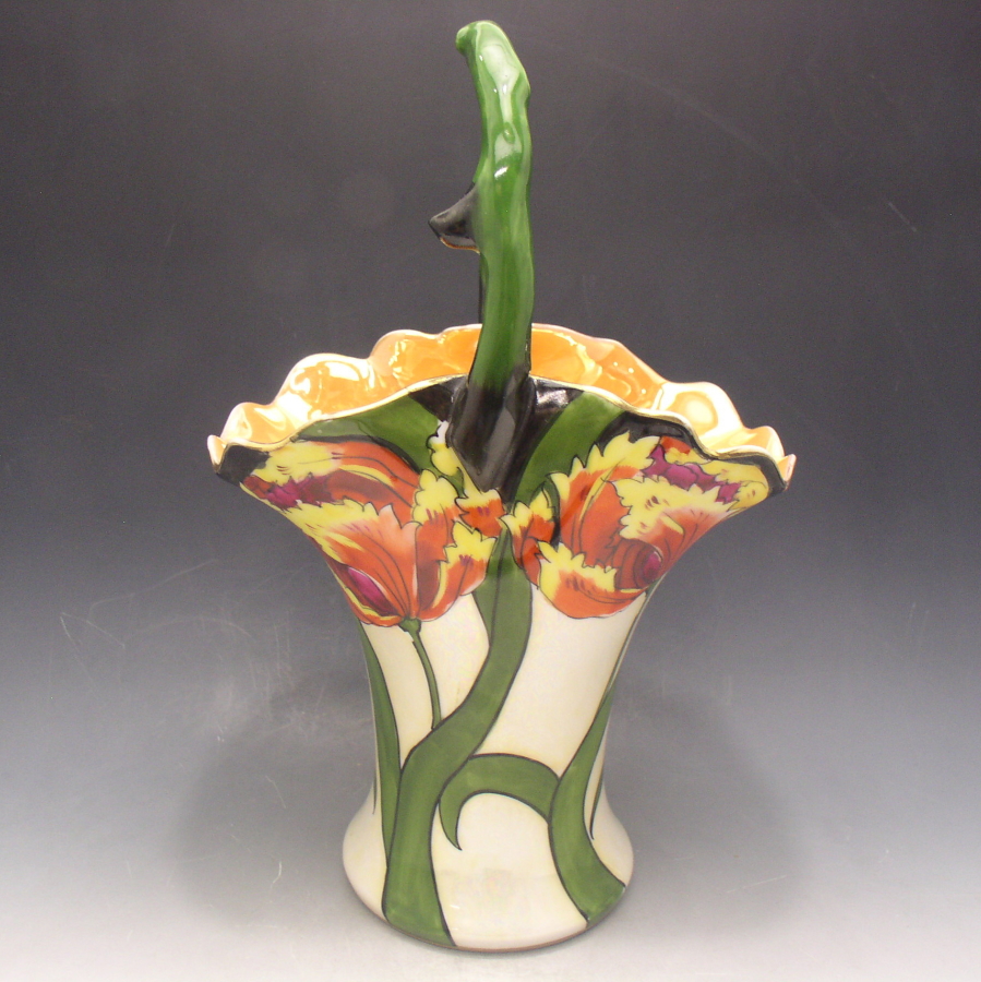 トップ > ラインナップ > オールドノリタケ一覧 Vol.010 > オールドノリタケ アールデコ草花文バスケット型花瓶