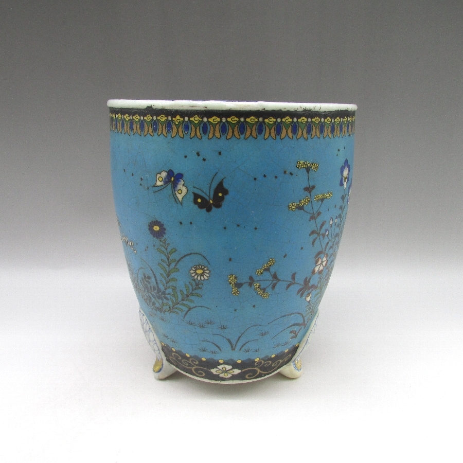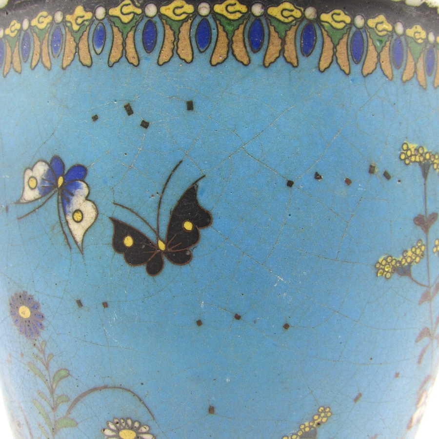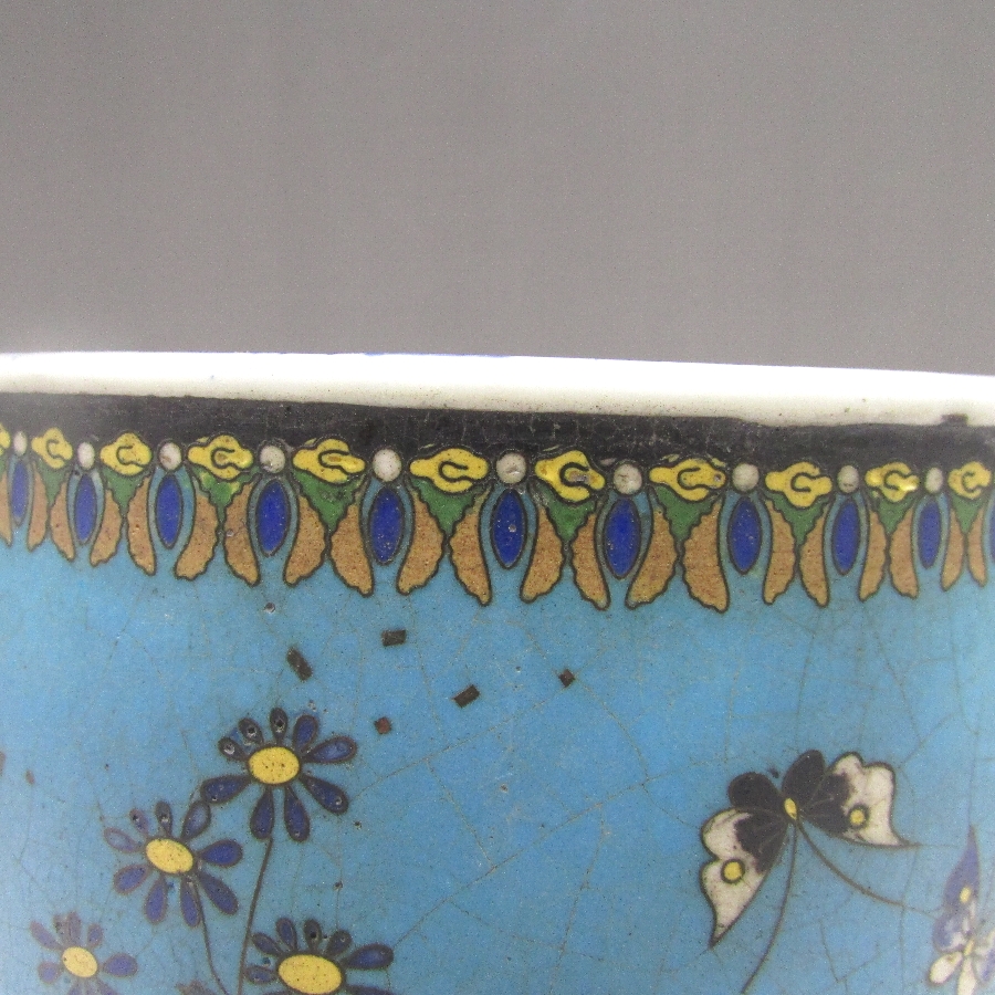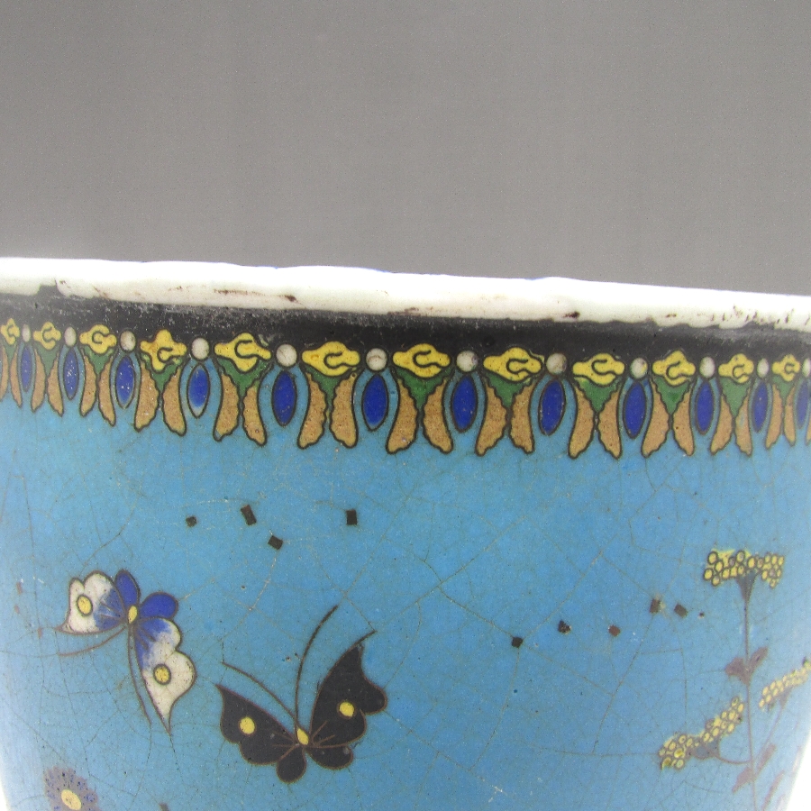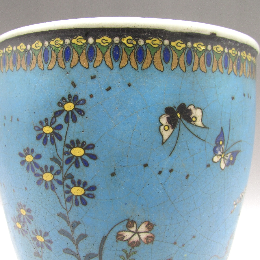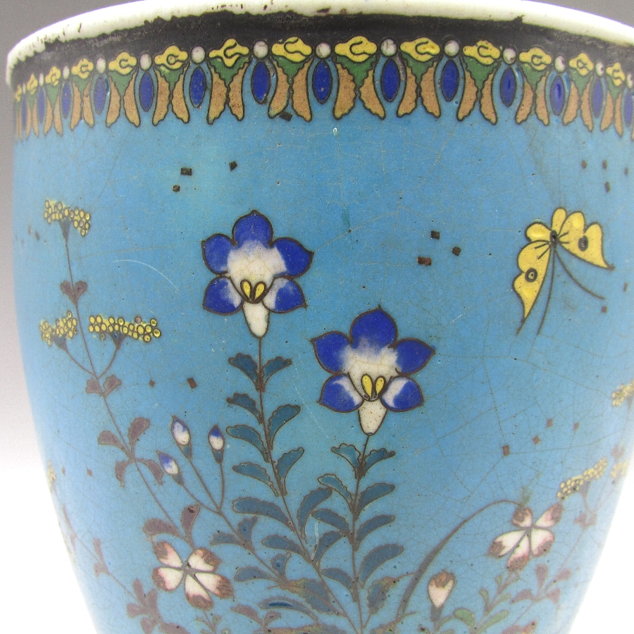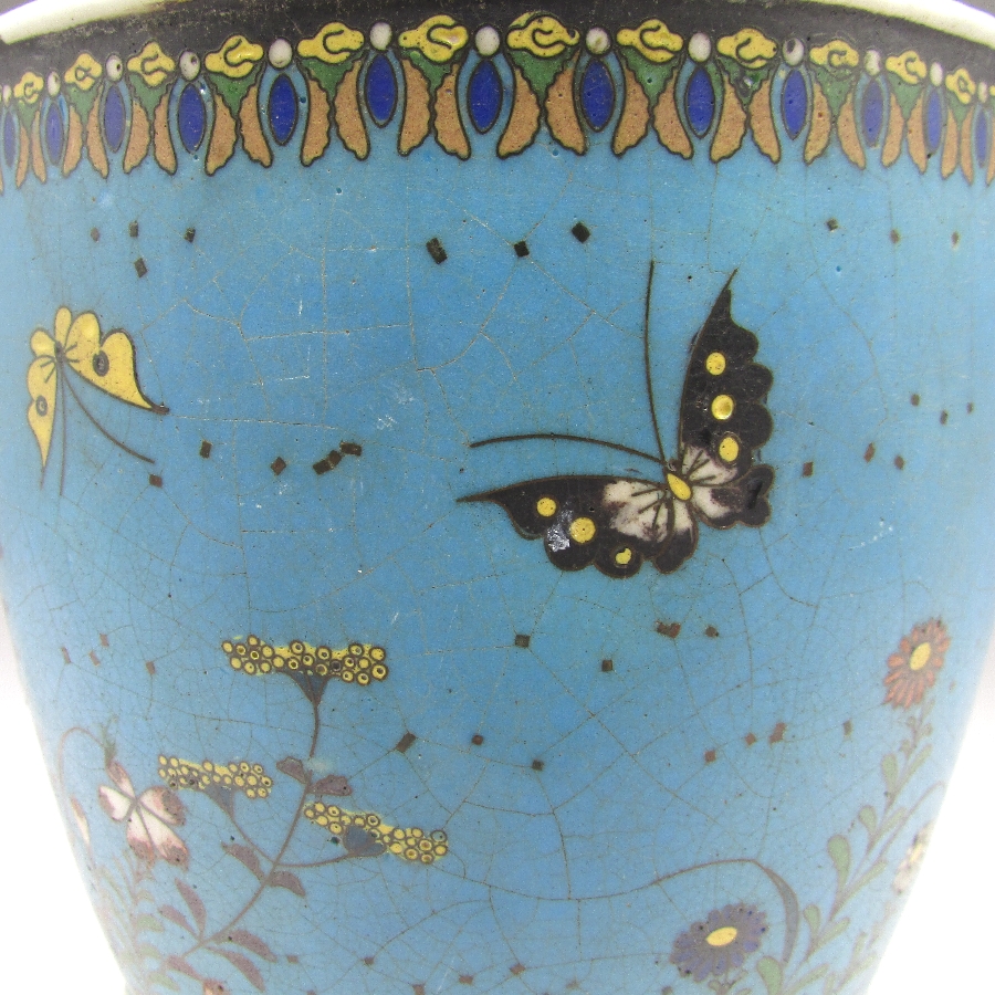 名称  七宝焼 竹内忠兵衛 磁胎七宝花蝶文植木鉢