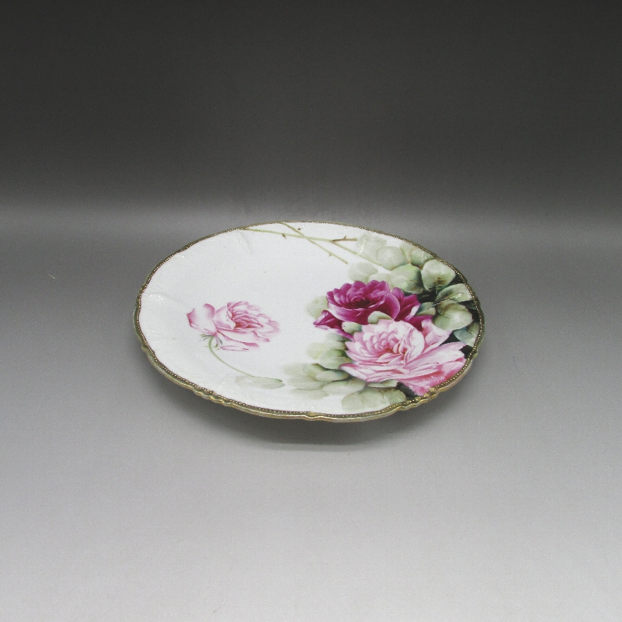 オールドノリタケの花押サイン入り薔薇文プレートです。1906年頃~1921年頃にアメリカに輸出され、約100年の時を経て日本に里帰りしてきました。
